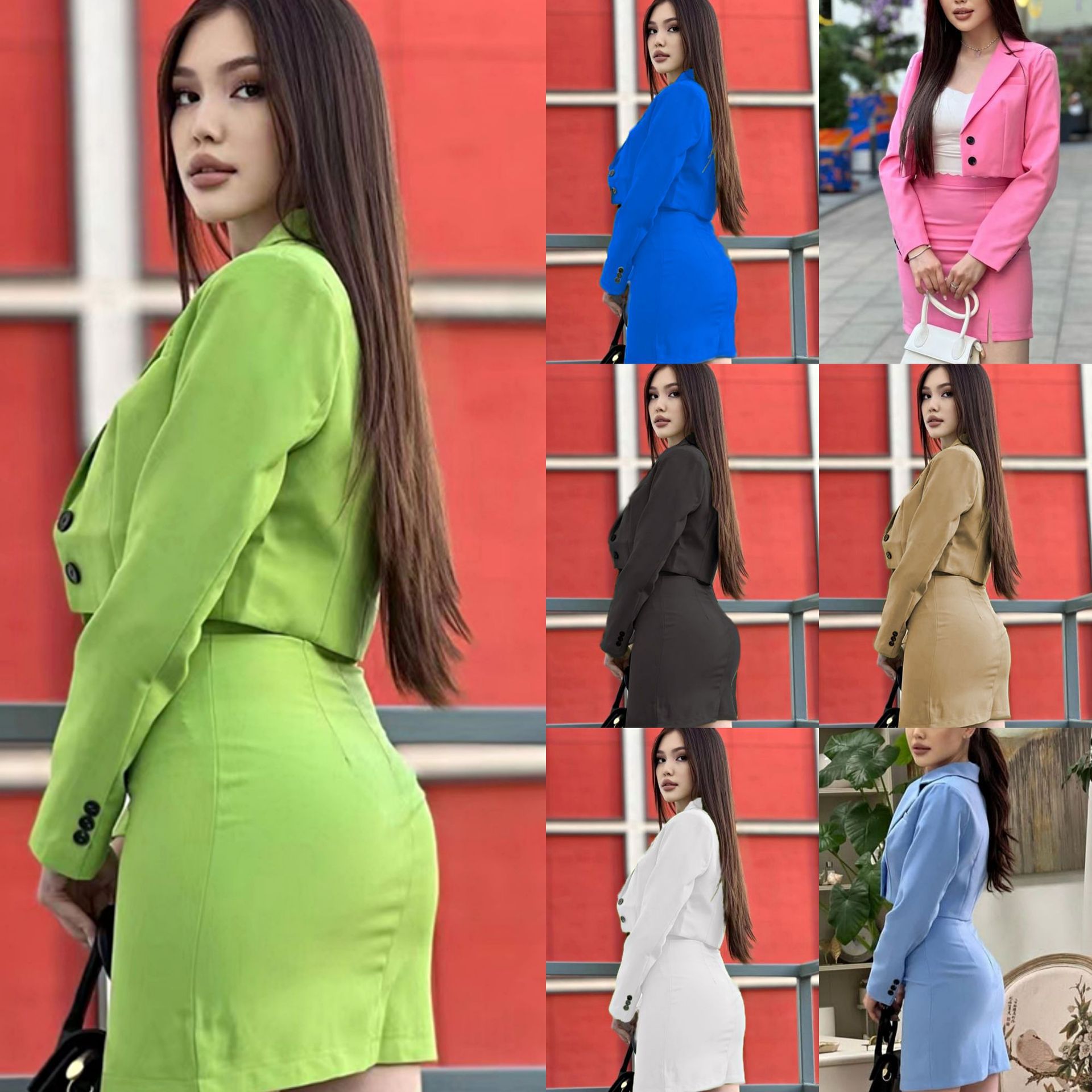 Entdecken Sie unser stilvolles Set, das aus einem eleganten Blazer und einem passenden Rock besteht. Dieses Ensemble ist ideal für besondere Anlässe oder einen trendigen Look im Büro.