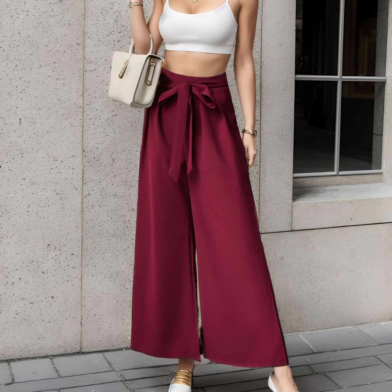 • Vielseitiges Design: Das Cropped Top mit Spaghettiträgern sorgt für einen modernen Look, während die weite Hose mit einem eleganten Bindegürtel für eine schmeichelhafte Silhouette sorgt.