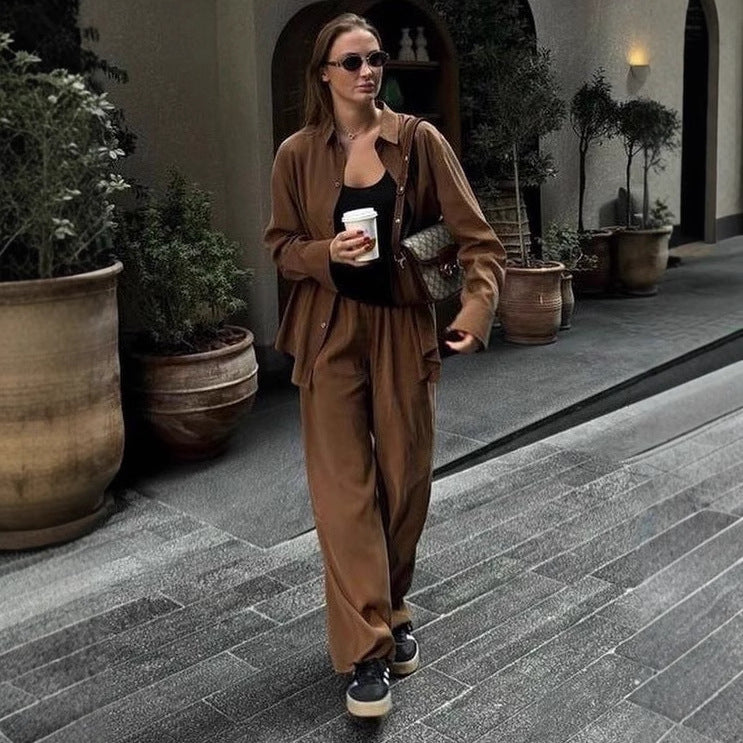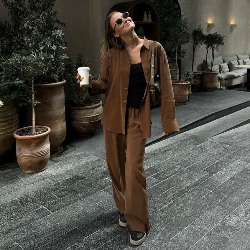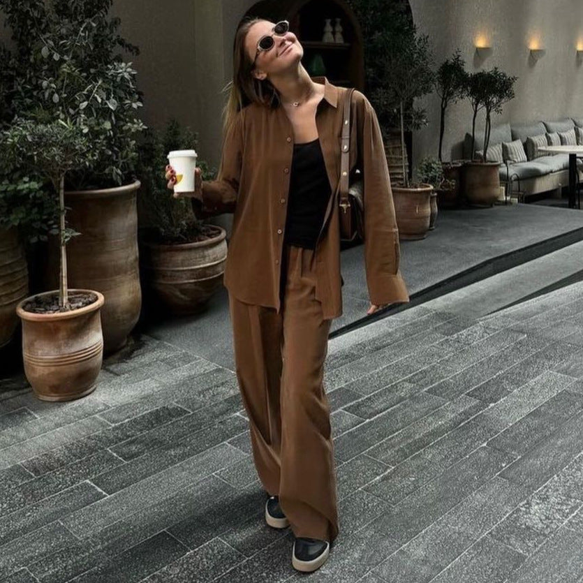 Damen elegantes Freizeitanzug-Set mit lockerer Bluse und weiten Hosen Stalluxe