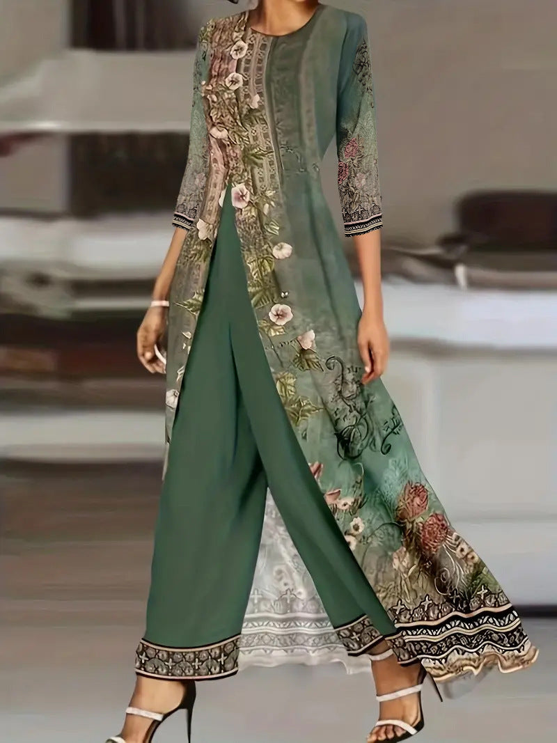 Damen elegantes Jumpsuit mit floralem Überwurf und weitem Bein Stalluxe