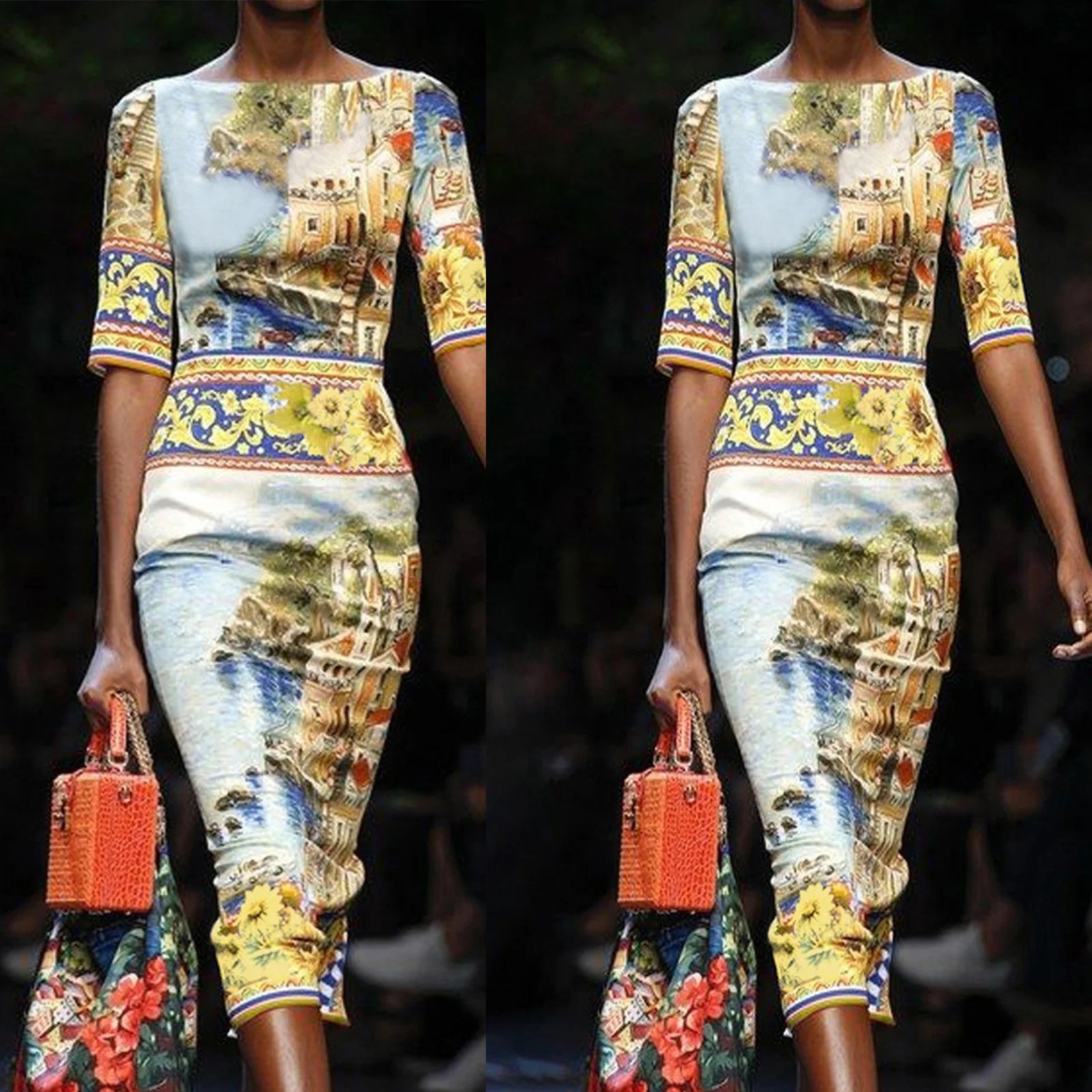 Damen Elegantes Kleid mit kunstvollem Druck Stalluxe