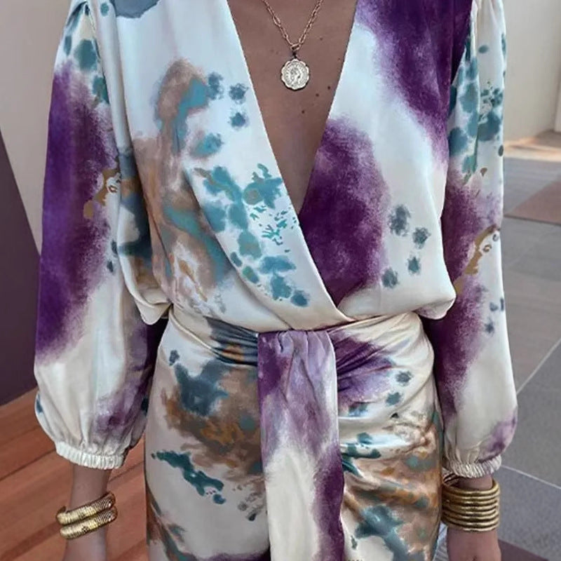 Damen Elegantes Wickelkleid mit kunstvollem Farbverlauf Stalluxe