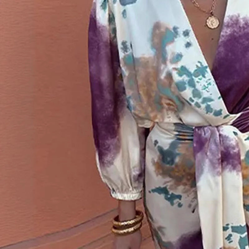 Elegantes Wickelkleid mit kunstvollem Farbverlauf