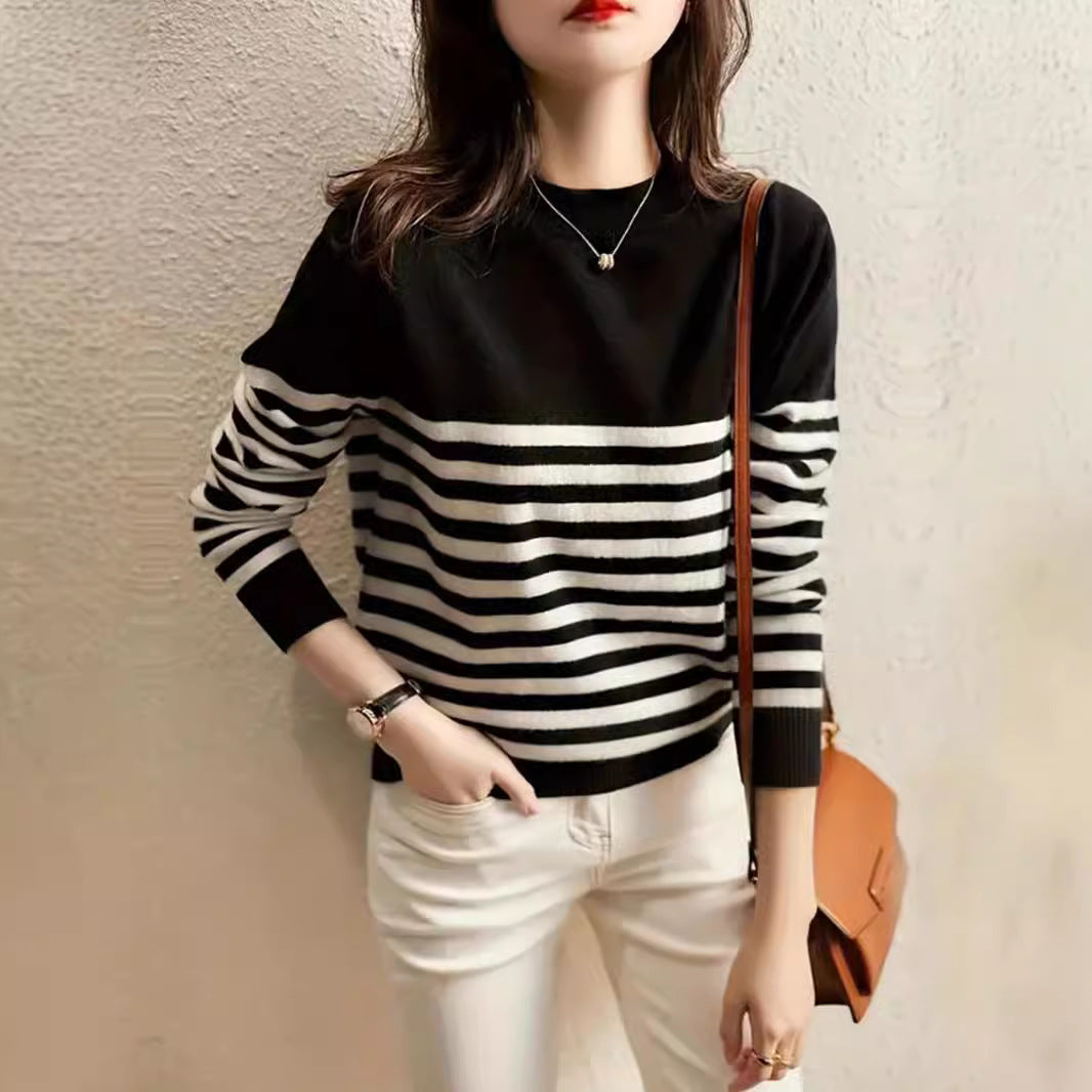 Entdecken Sie unseren Damen Feinstrickpullover mit maritimem Streifenmuster und Rundhalsausschnitt von Stalluxe, der Eleganz und Komfort in einem bietet. Dieses zeitlose Kleidungsstück verwandelt jedes Outfit und ist perfekt für jede Jahreszeit.