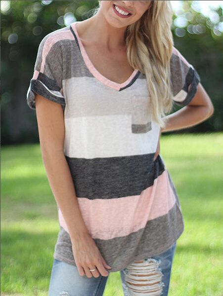 Damen Freizeit T-Shirt mit V-Ausschnitt und Tasche Stalluxe