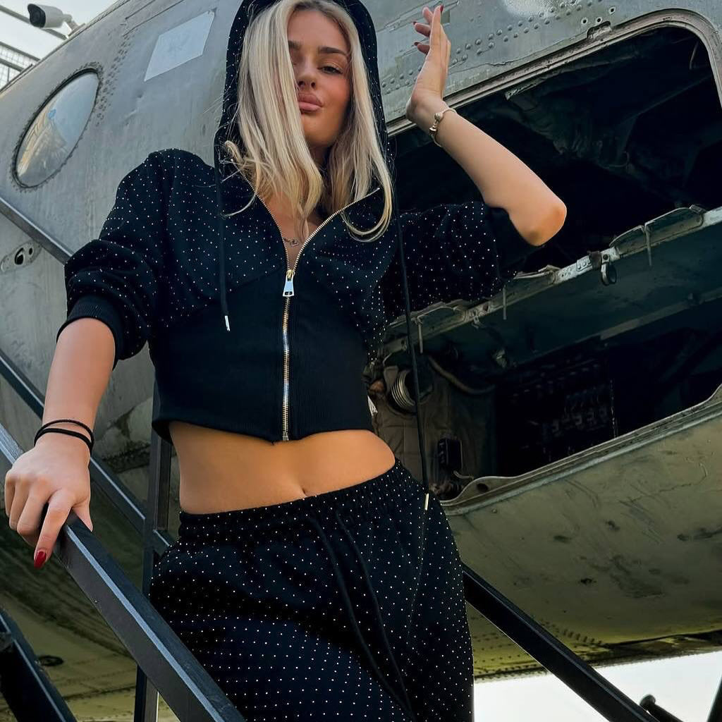 Entdecken Sie den Damen Freizeitanzug mit Glitzerakzenten und bequemer Passform von Stalluxe, der perfekt für entspannte Tage und stylische Nächte geeignet ist. Dieser Set kombiniert ein lässiges Kapuzenoberteil mit einem modischen Schnitt und einer elastischen Hosen für maximalen Komfort.