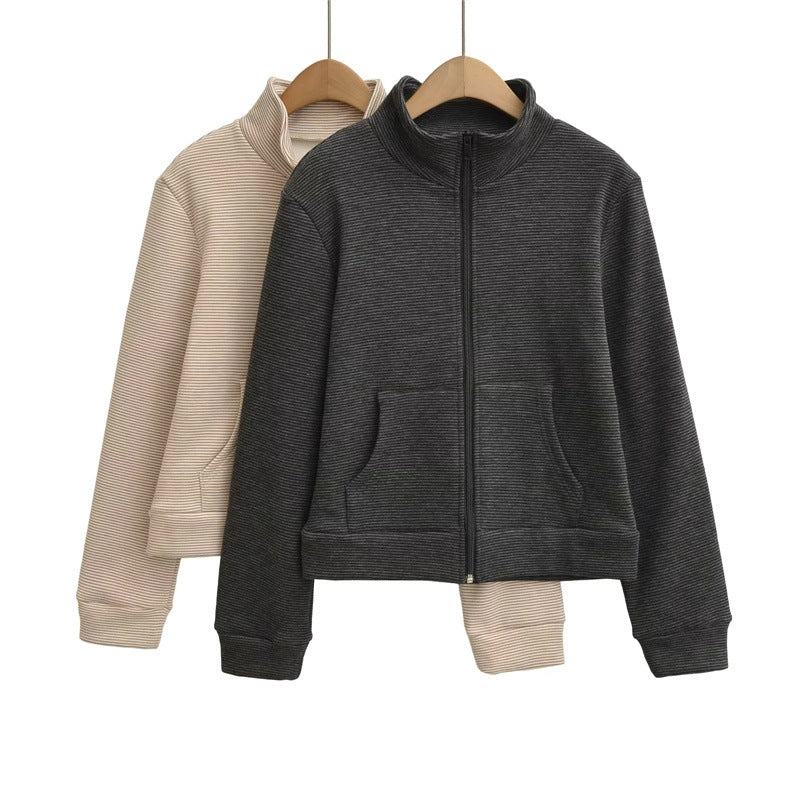 • Hochgeschlossener Kragen: Bietet zusätzlichen Schutz und Wärme an kühleren Tagen.