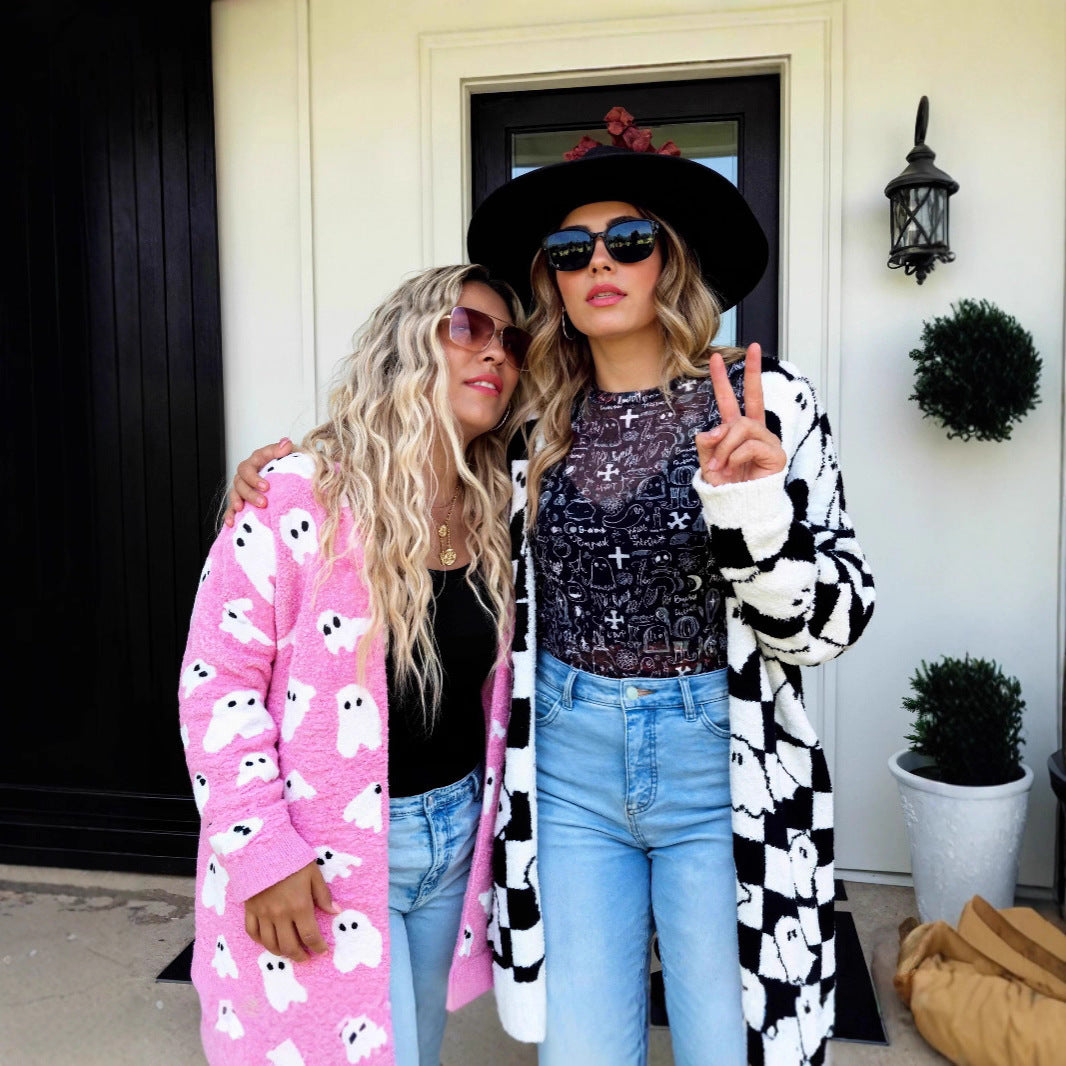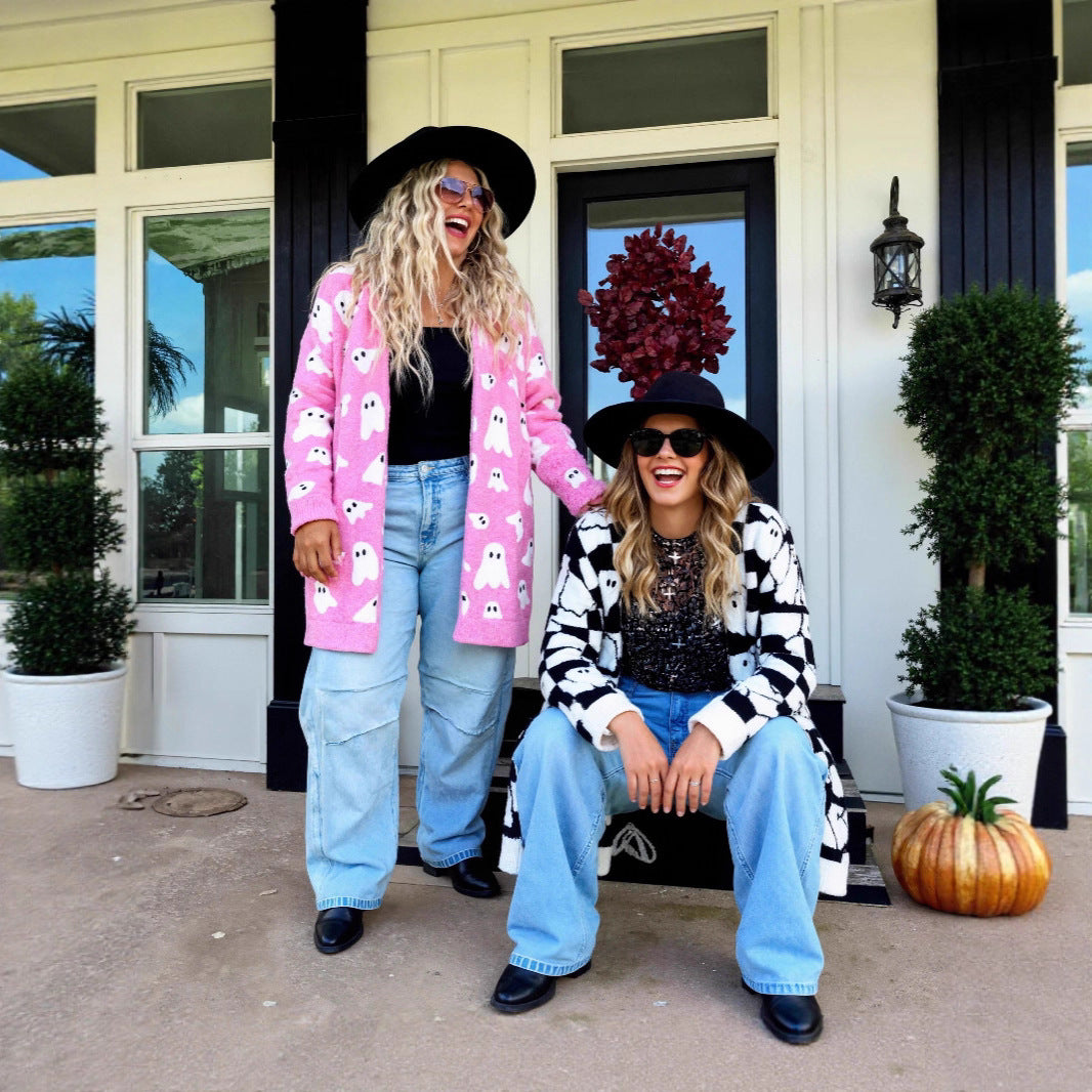 Diese originelle Damen Geister-Motiv Strickjacke von Stalluxe ist der perfekte Begleiter für die kühleren Monate. Mit ihrem verspielten Design und den niedlichen Gespenstern bringt sie Freude in Ihren Alltag und eignet sich ideal für Halloween-Feiern oder als stylisches Statement für den Alltag.
