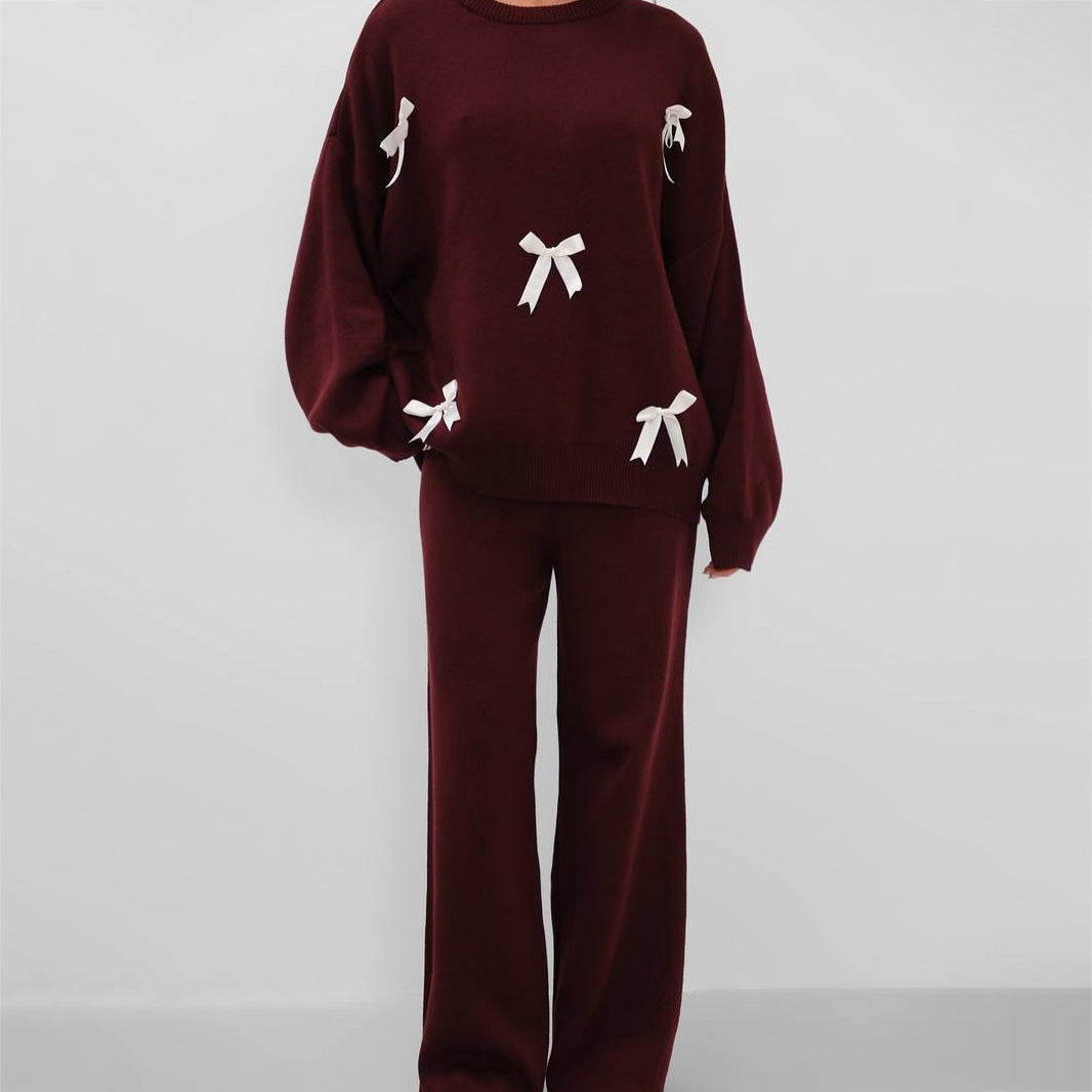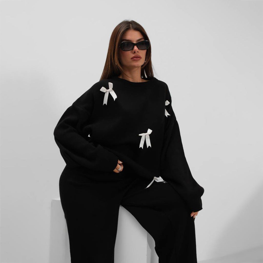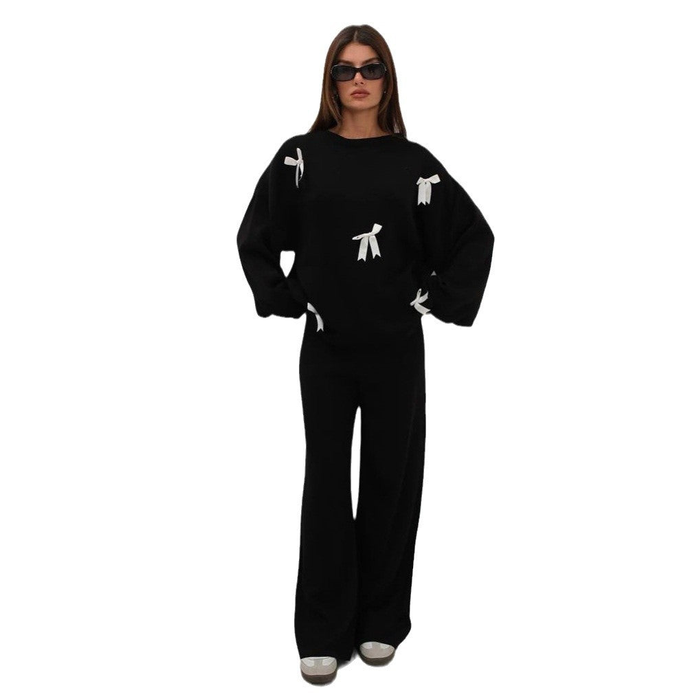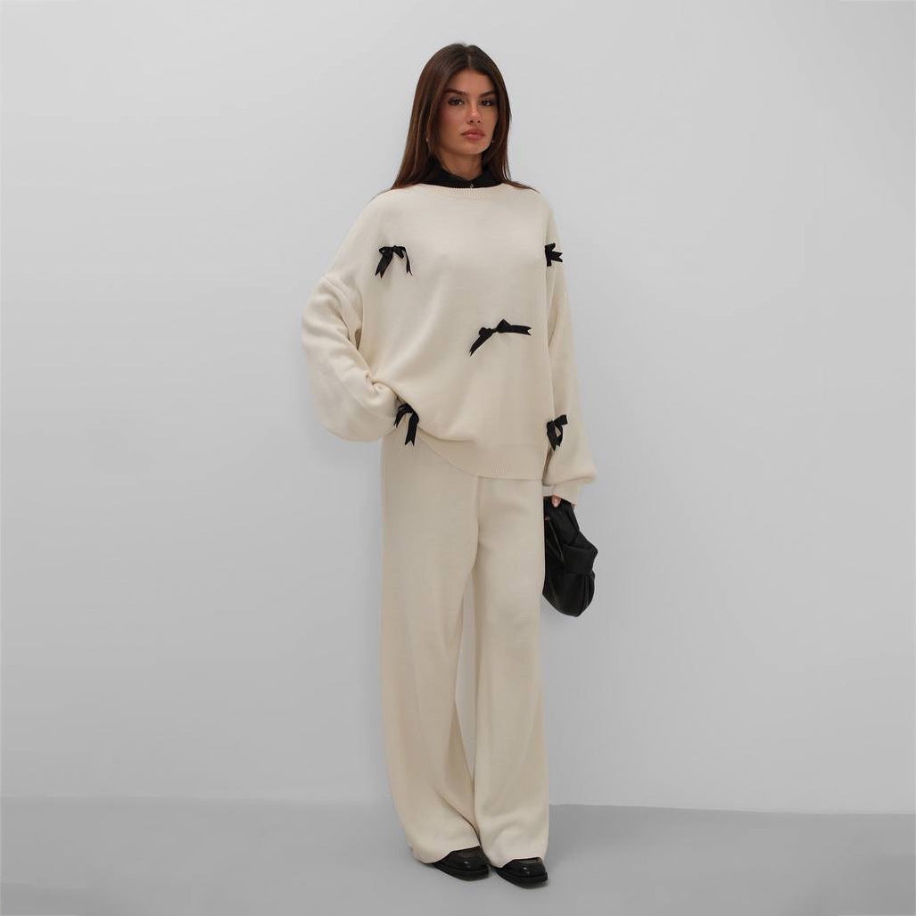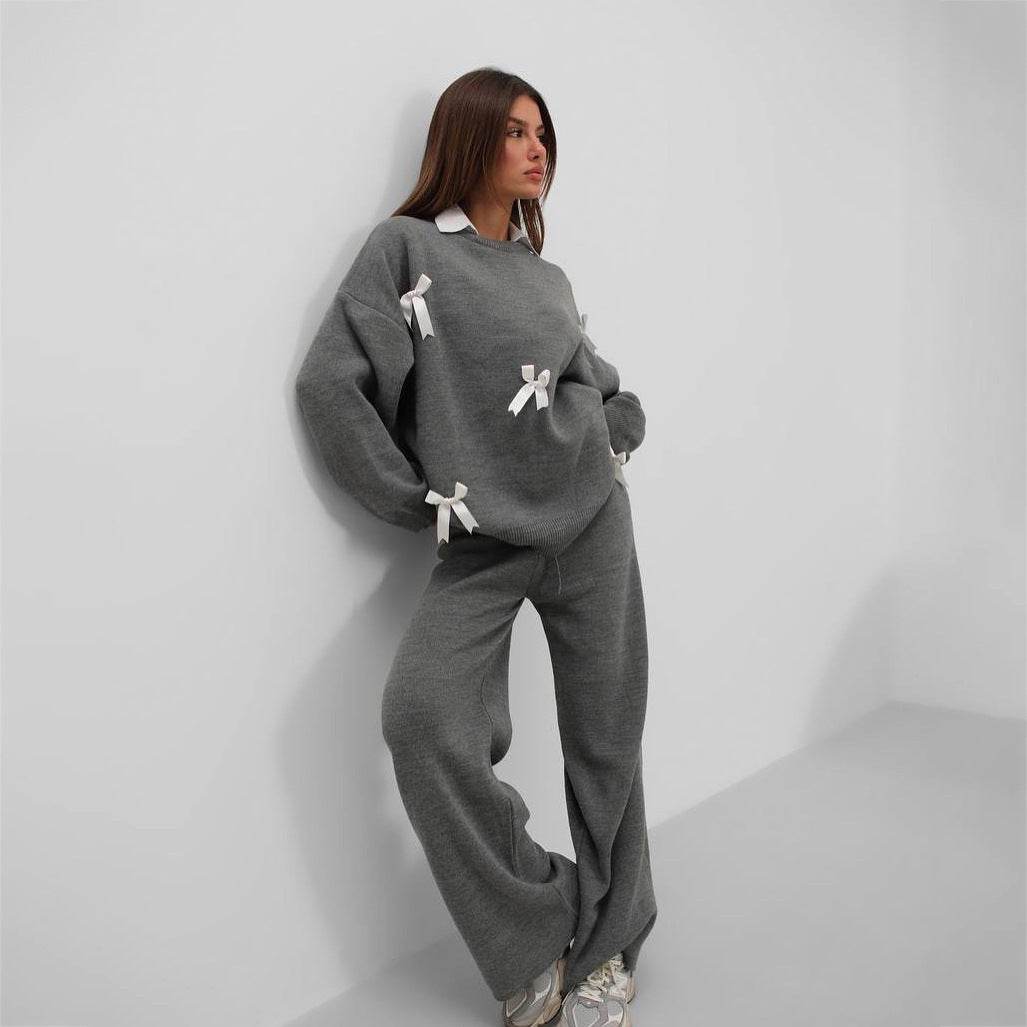 Damen gemütlicher Strickanzug mit hochwertigen Applikationen Stalluxe
