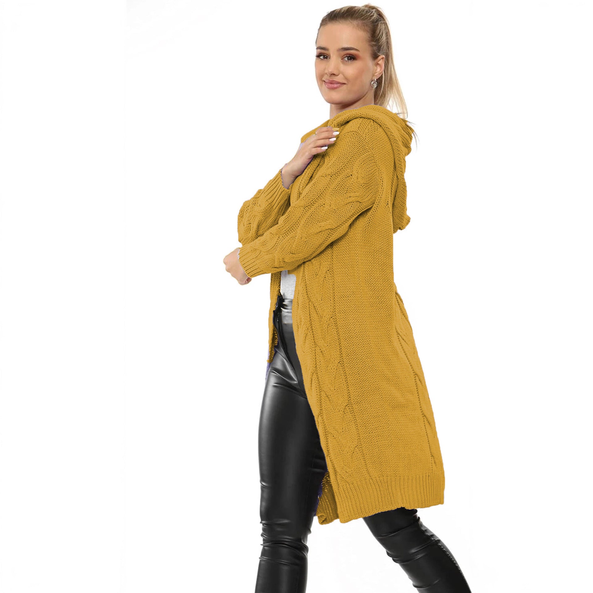 Damen Großer Strickmantel mit Kapuze und aufwendiger Zopfmusterstruktur Stalluxe
