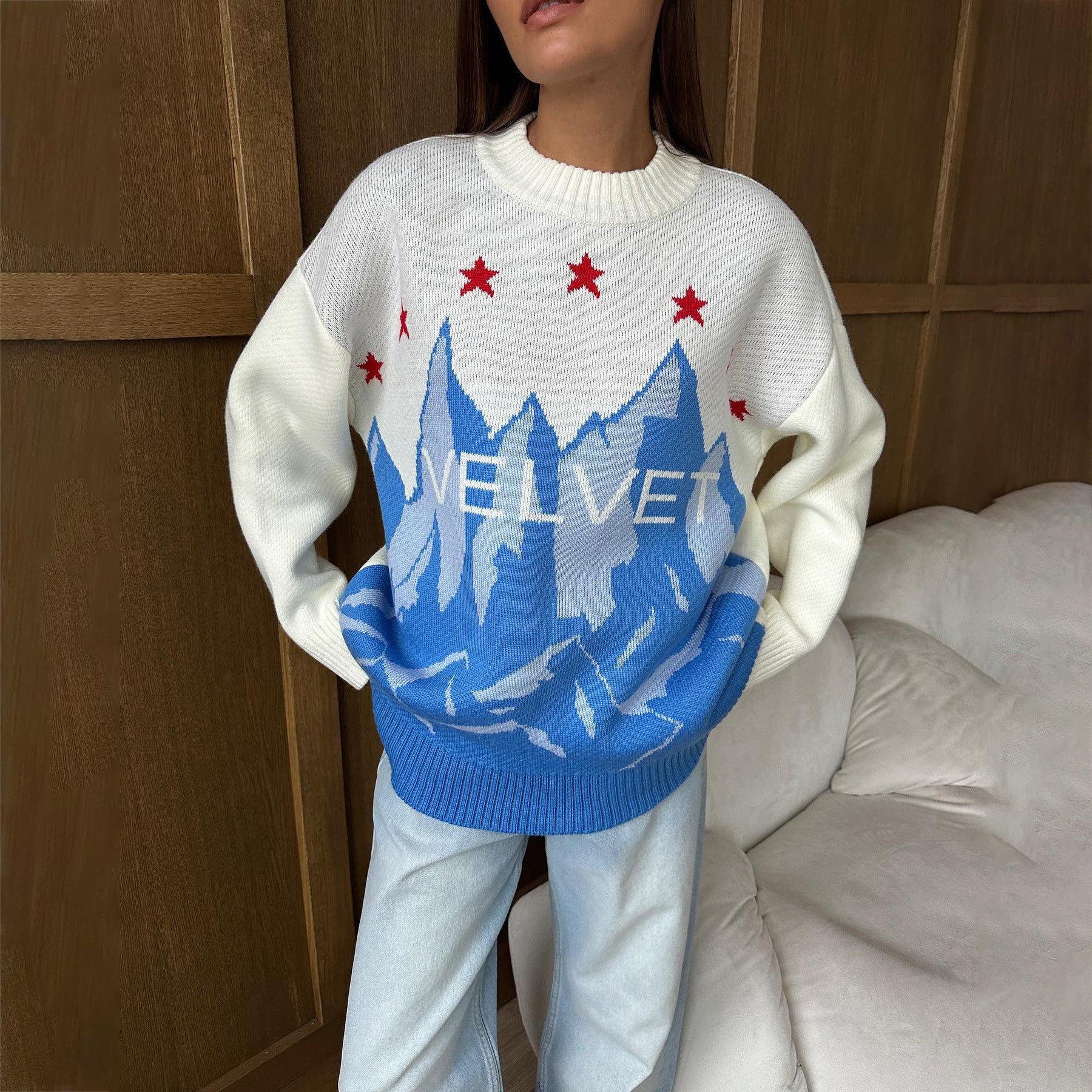 Damen Großer Strickpullover mit grafischem Bergdesign und stylischen Sternen Stalluxe