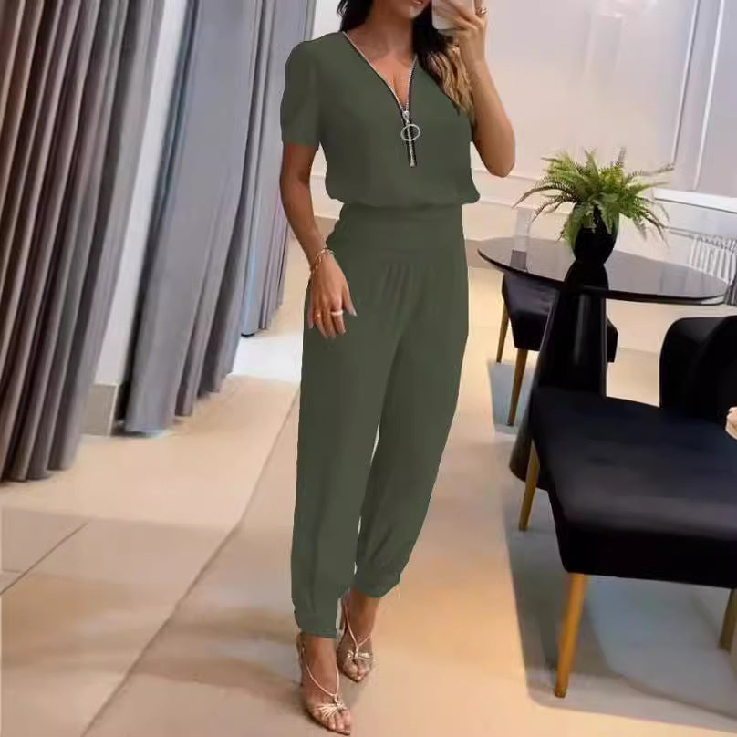 Entdecken Sie den einzigartigen Damen Jumpsuit mit V-Ausschnitt und Gummizug von Stalluxe. Dieser Jumpsuit vereint Stil und Komfort, ideal für jede Gelegenheit, sei es für das Büro oder einen besonderen Abend.