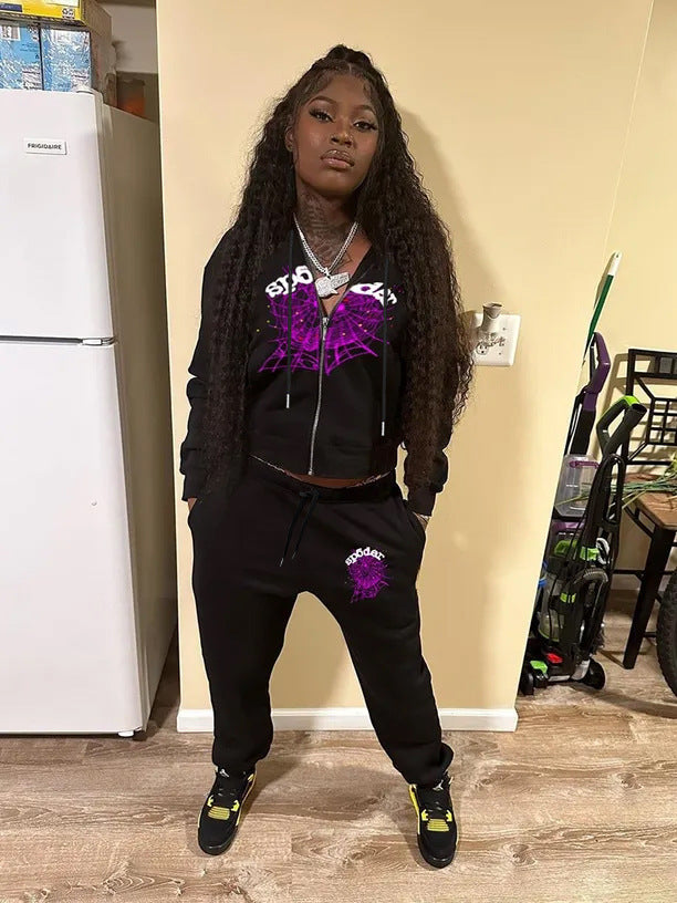 Damen Kapuzenjacke und Jogginghose Set mit auffälligem Webdesign Stalluxe