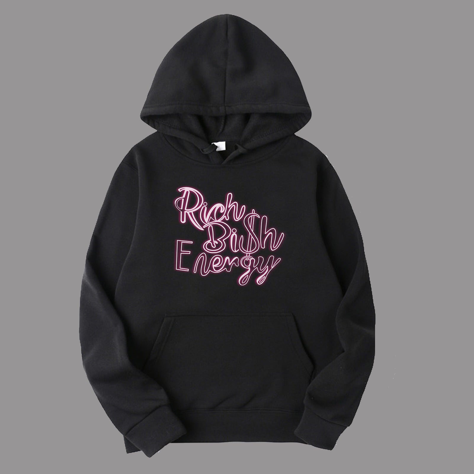 Entdecken Sie unseren stilvollen Damen Kapuzenpullover mit dem auffälligen Aufdruck "Rich B$h Energy". Dieser Kapuzenpullover vereint Komfort und trendiges Design, ideal für lässige Anlässe und tägliche Outfits.