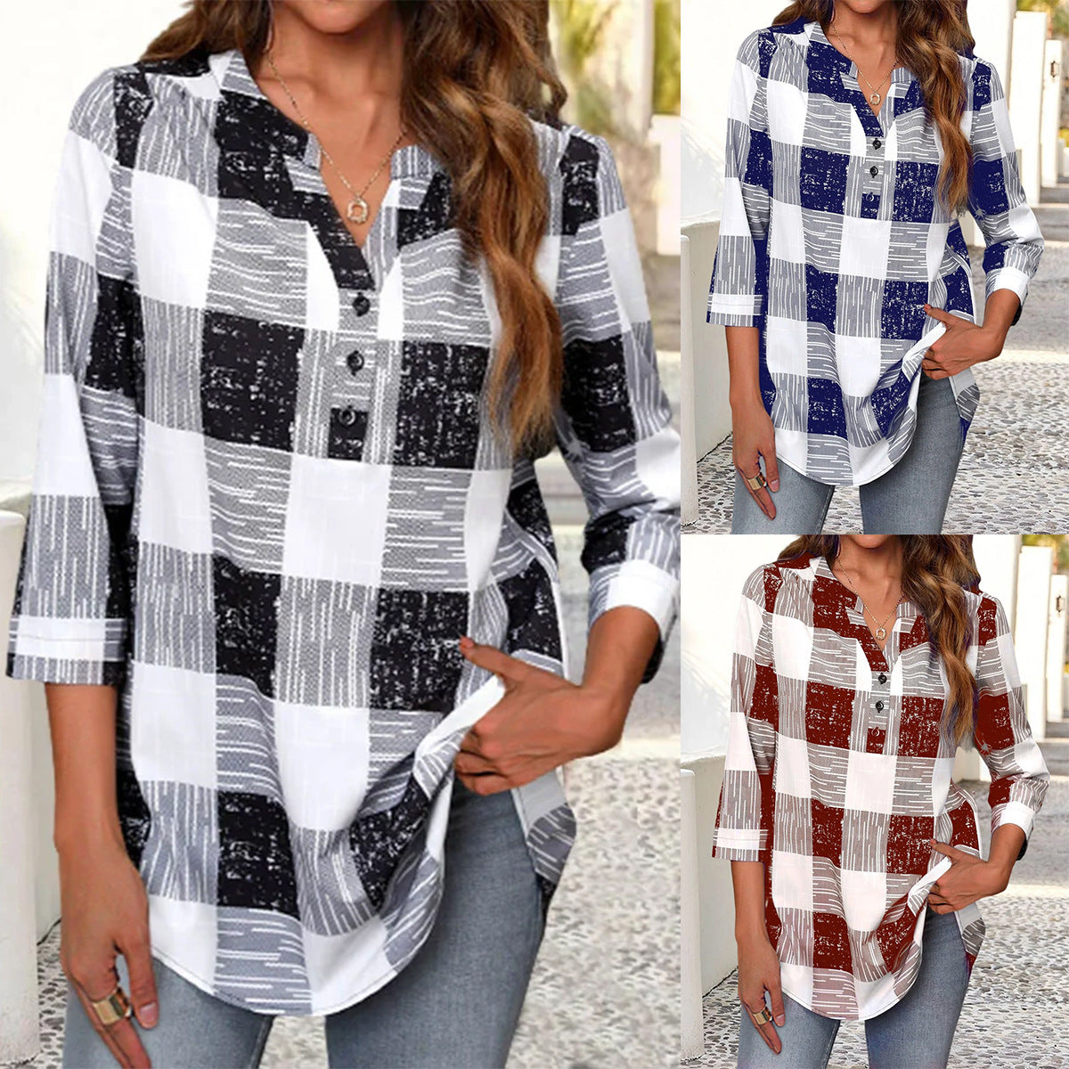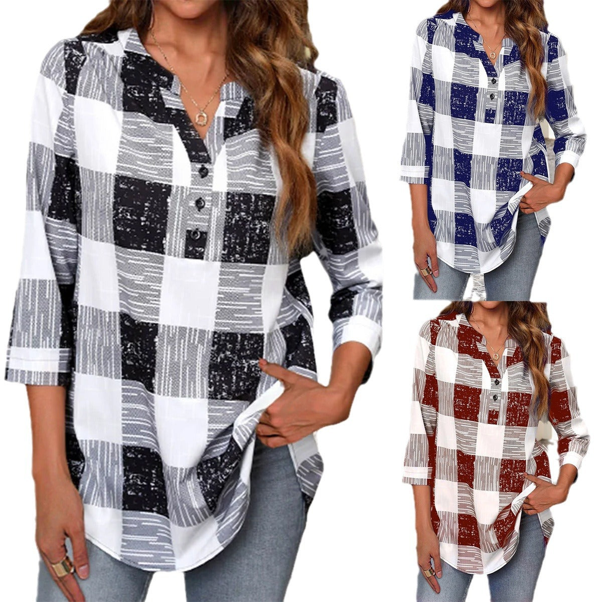 Entdecken Sie die stilvolle Damen Kariertes Langarmblusenhemd mit Knopfdetails von Stalluxe. Dieses modische Oberteil überzeugt durch sein zeitloses Karomuster und bietet eine perfekte Kombination aus Stil und Komfort.