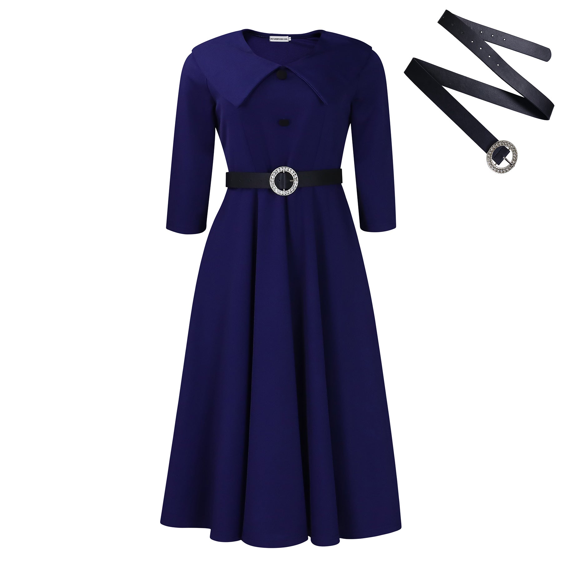 Damen klassisches A-Linien Kleid mit eleganter Kragenpartie und Gürtel Stalluxe