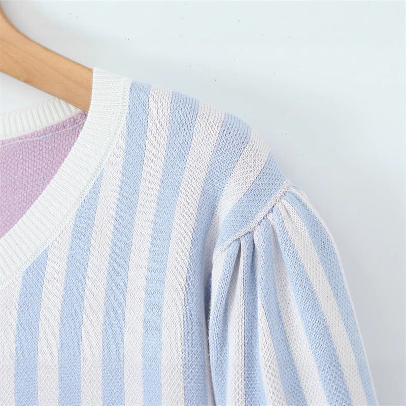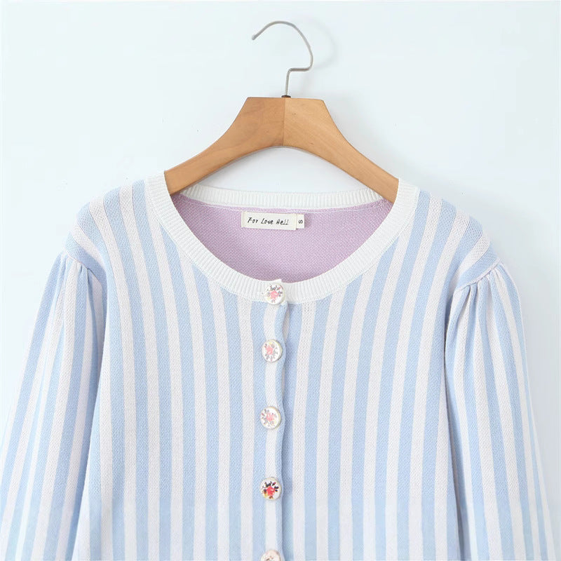 Entdecken Sie unsere Damen kurzärmlige Strickjacke mit Blumenverzierung, die einen Hauch von Eleganz und Stil in Ihre Garderobe bringt. Diese modische Strickjacke kombiniert eine zarte, klassisch gestreifte Optik mit charmanten, handgestickten Blumenmotiven, die für eine frische, feminine Note sorgen.