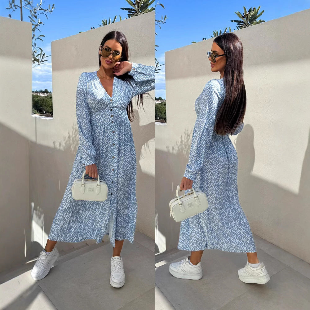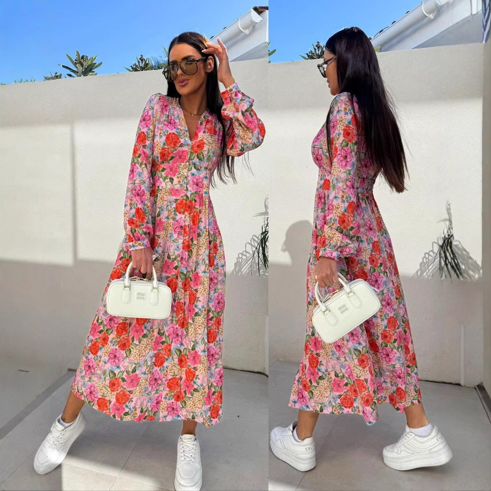 Einzigartiges florales Langarmkleid für Damen
