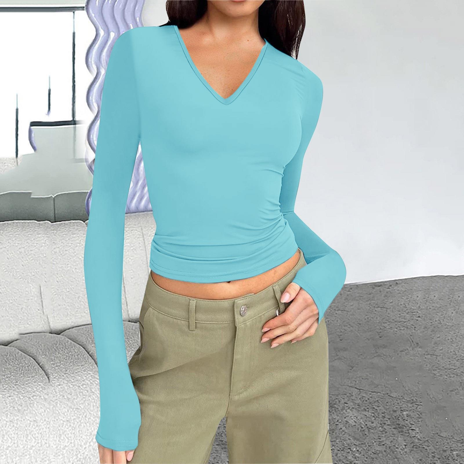 Entdecken Sie unser stilvolles und vielseitiges Langarmshirt mit V-Ausschnitt, das sich ideal für jedes modebewusste Damenset eignet. Hergestellt aus hochwertiger und bequemer Materialmischung, bietet dieses Shirt sowohl Komfort als auch ein trendiges Design.