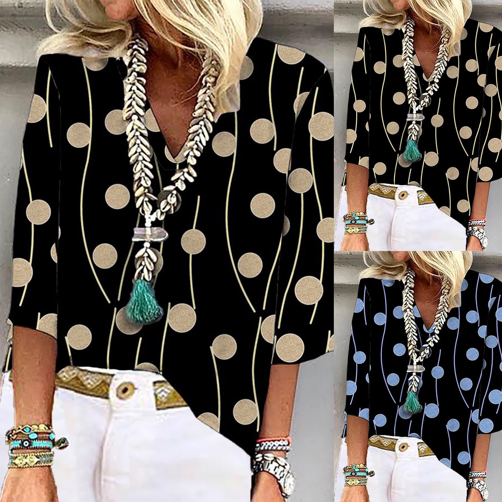 Perfekt für den Frühling und Sommer, lässt sich diese Bluse sowohl tagsüber als auch abends stilvoll tragen. Ergänzen Sie Ihre Kollektion mit diesem Must-Have und erleben Sie den besonderen Komfort und Look, den die Damen Lässige Bluse mit modernen Kreismustern bietet.