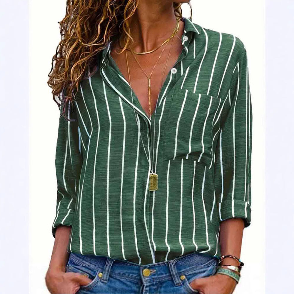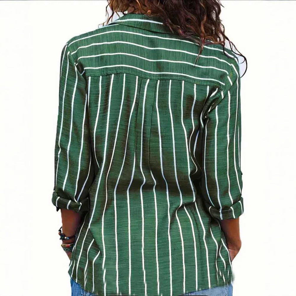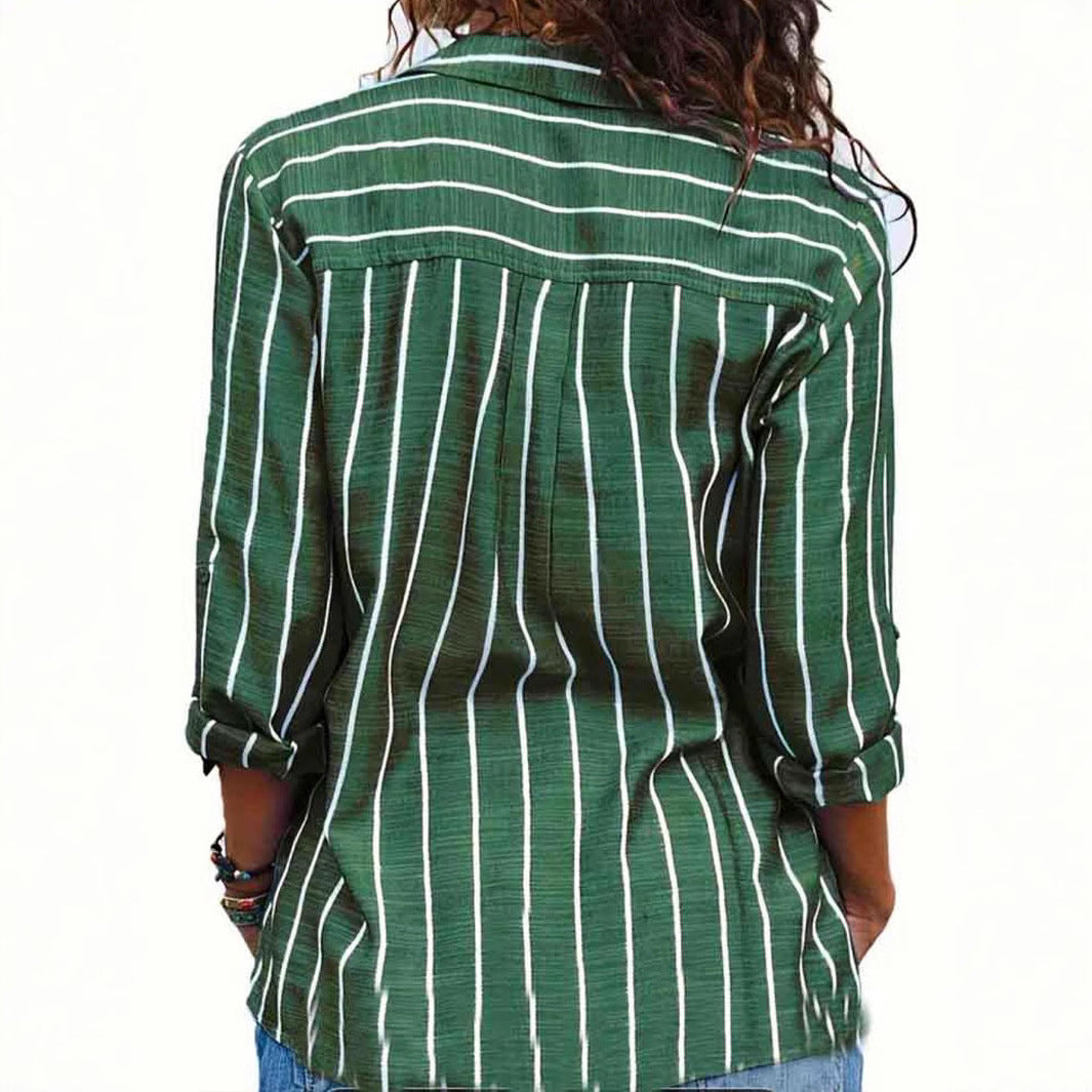 Damen lässige Hemdbluse mit vertikalen Streifen und Brusttasche Stalluxe