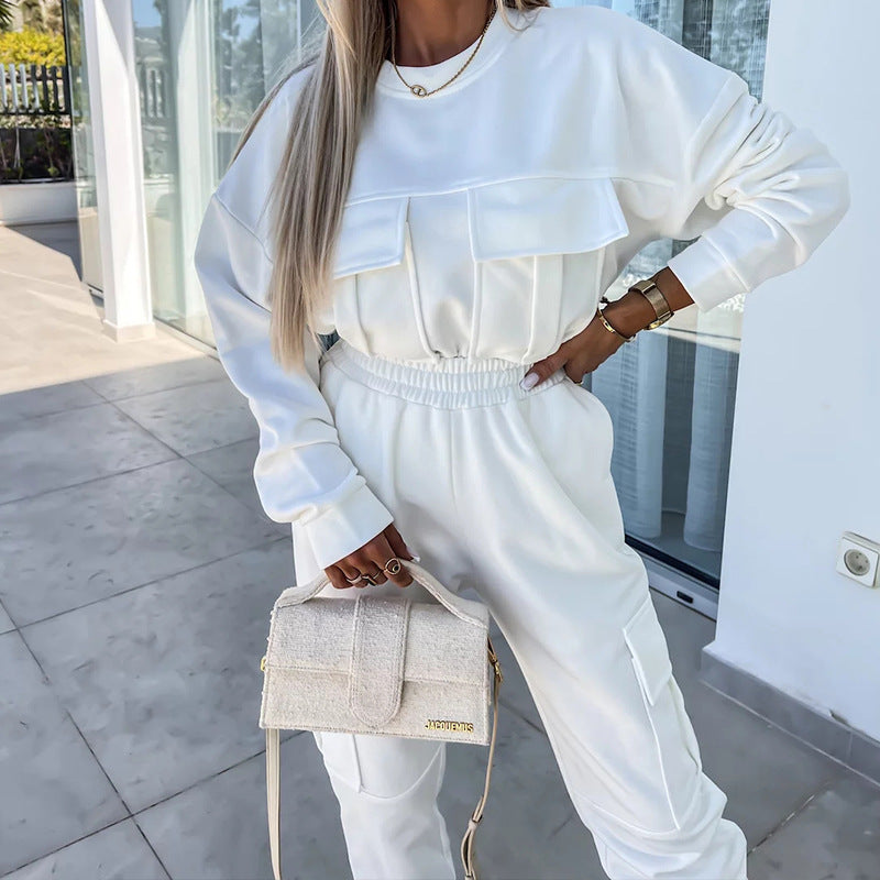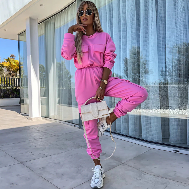 Damen lässiger Jogginganzug mit modischen Taschen und elastischem Bund Stalluxe
