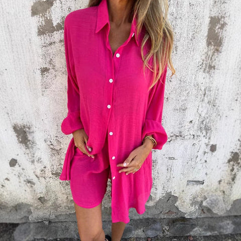 • Designmerkmale: Mit klassischen Knöpfen und einem lässigen Hemdblusenstil, der sowohl elegant als auch bequem ist.