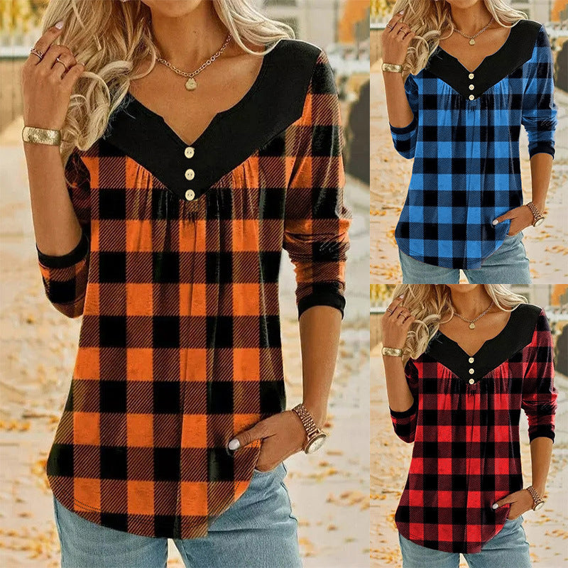 Damen lässiges Karohemd mit Knopfleiste und tiefem V-Ausschnitt Stalluxe