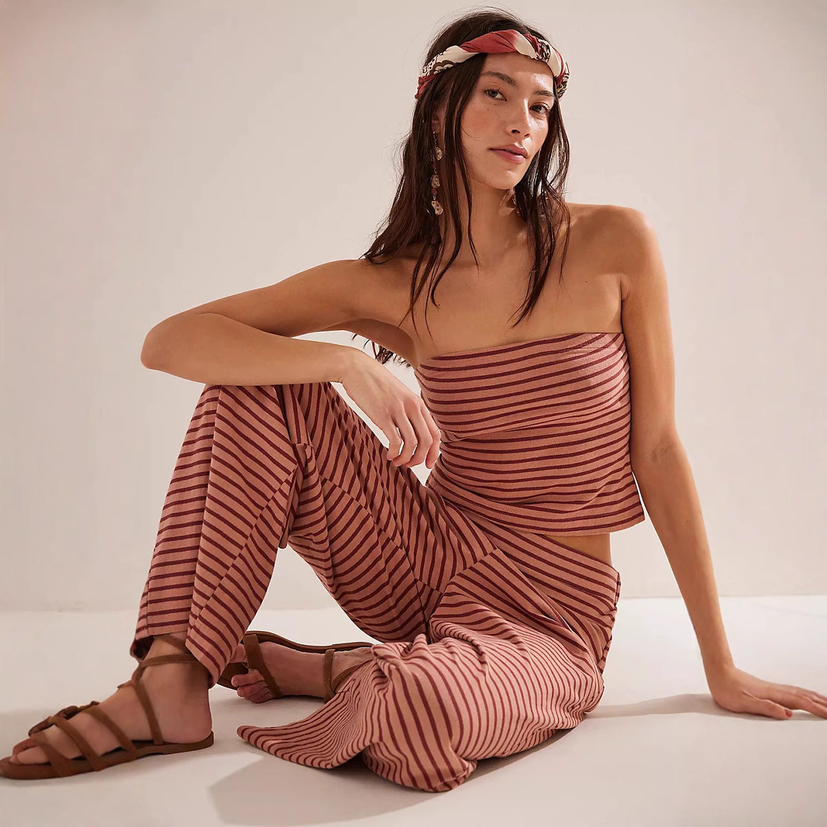 Damen lässiges Strand-Lounge-Set mit weitem Schnitt und maritimer Streifenoptik Stalluxe