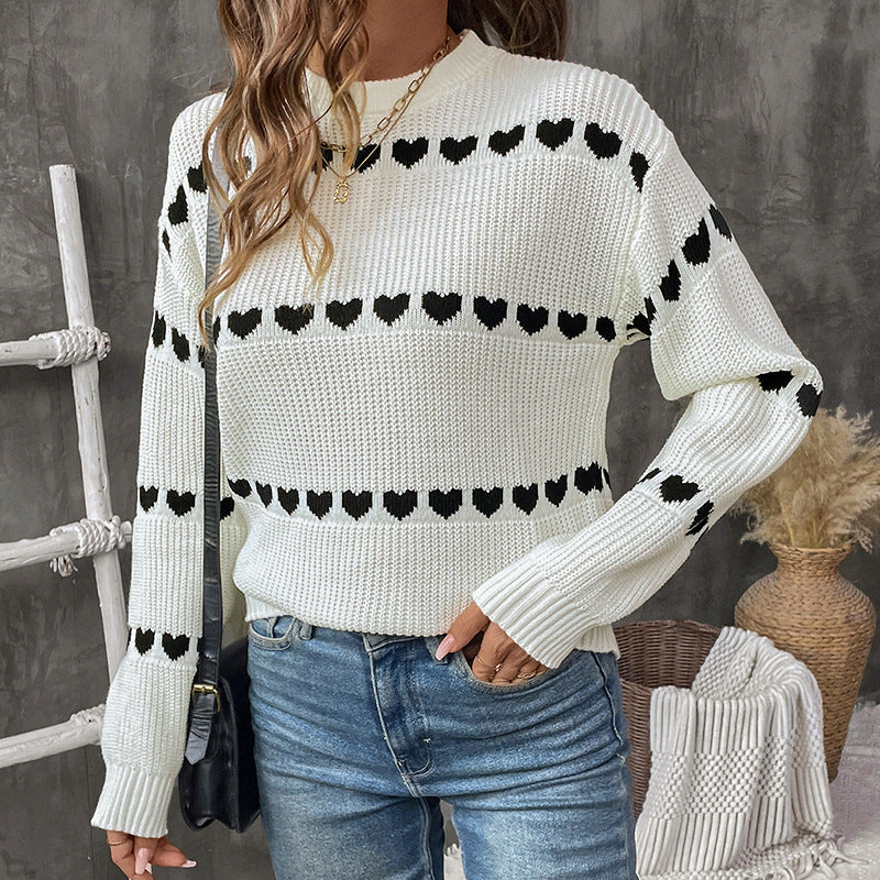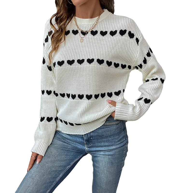 Damen lockerer Strickpullover mit Herzmuster Stalluxe