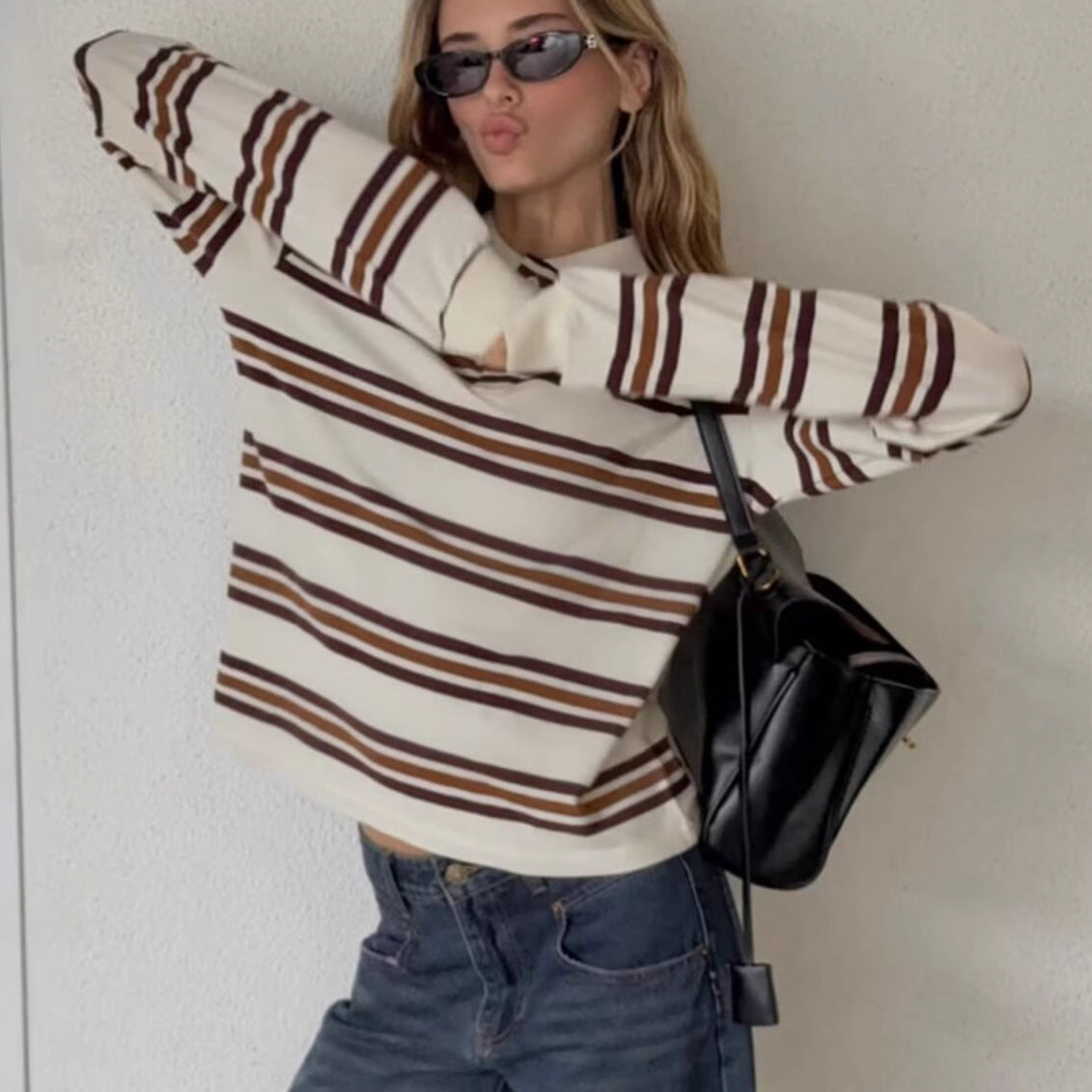 Entdecken Sie unser hochwertiges Damen Longsleeve Poloshirt mit einem stilvollen modernen Streifenmuster. Dieses vielseitige Oberteil kombiniert Komfort und elegantes Design und ist ideal für die Übergangszeit.