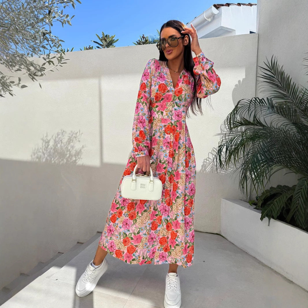 Setzen Sie modische Akzente und fühlen Sie sich wohl in unserem Damen Maxikleid mit floralem Muster von Stalluxe – Ihr idealer Begleiter für die Sommermonate!