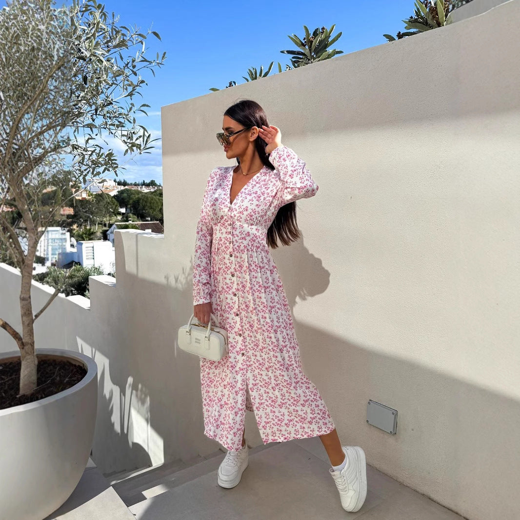 • Entzückendes florales Design: Das aufwendige florale Muster verleiht dem Kleid einen frischen und femininen Touch, perfekt für Gartenpartys oder Sommerausflüge.