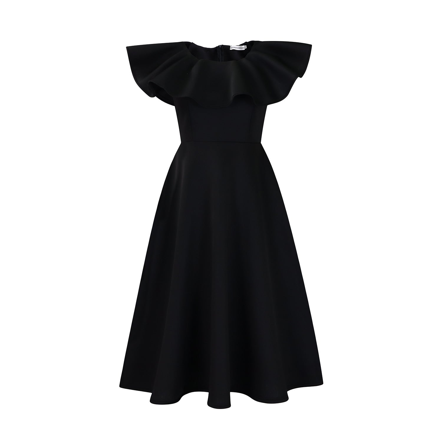 Damen Maxikleid mit voluminösem Kragen und schwingendem Rock Stalluxe