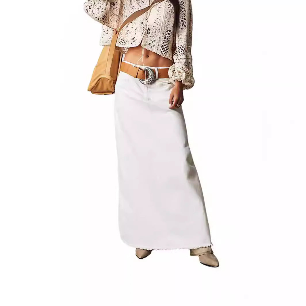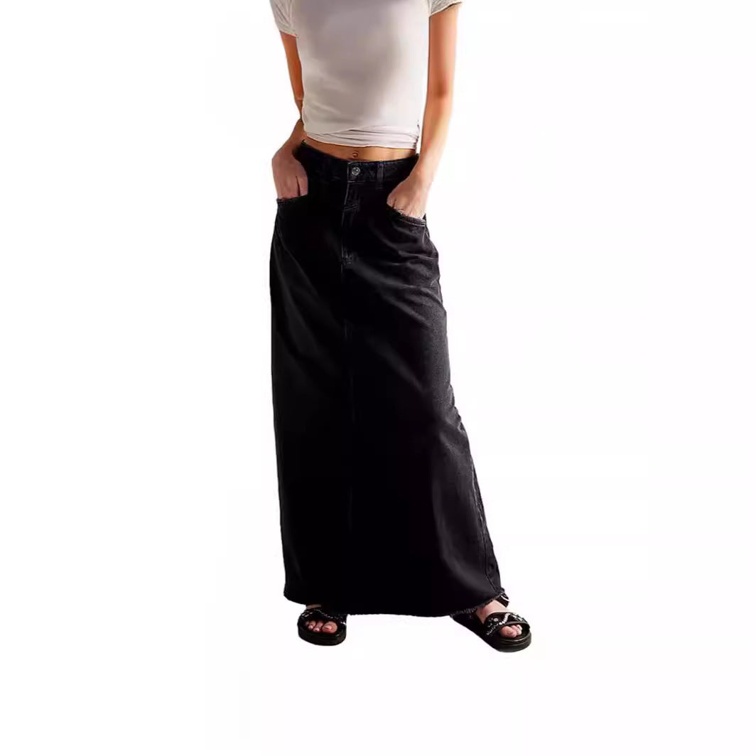 Damen Maxirock aus Denim mit asymmetrischem Saum und bequemen Taschen Stalluxe