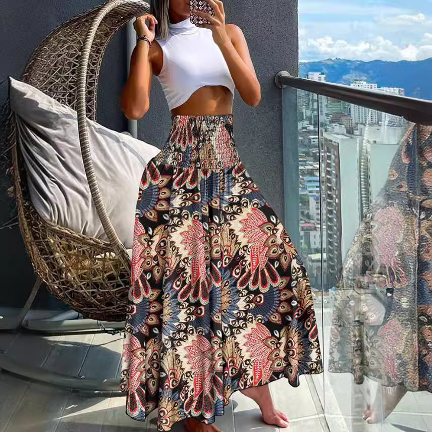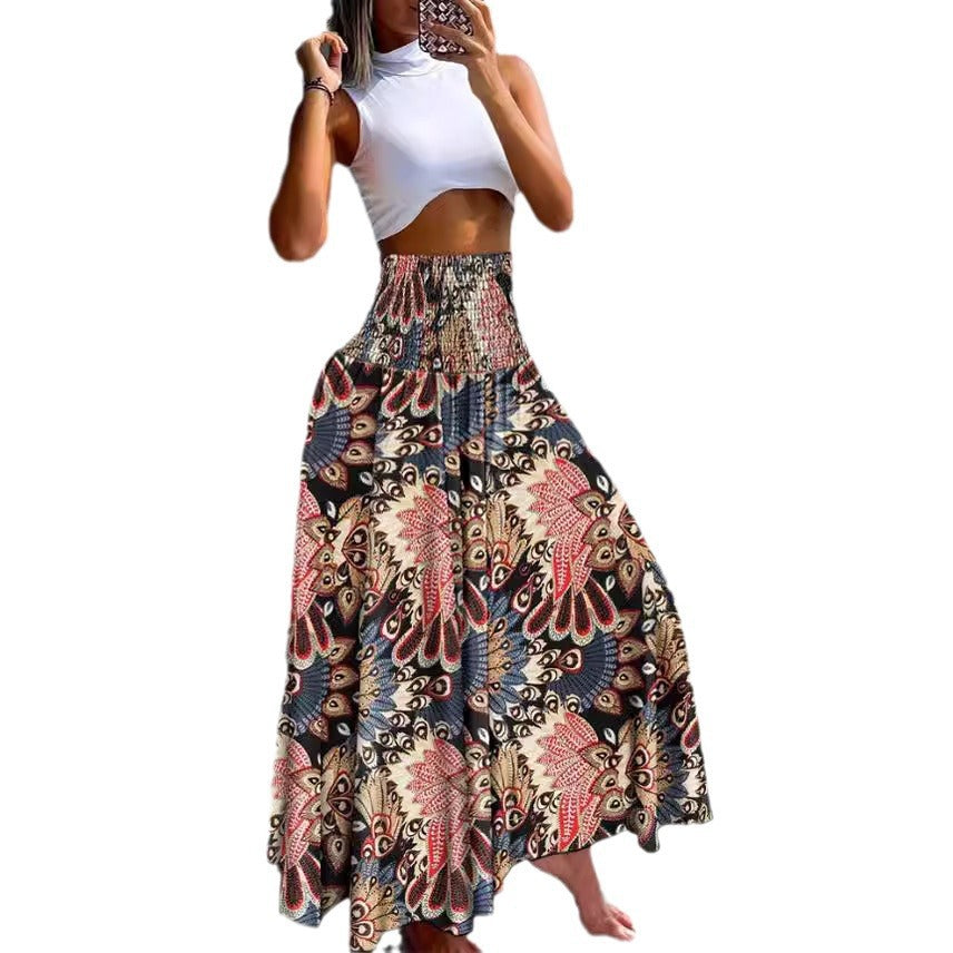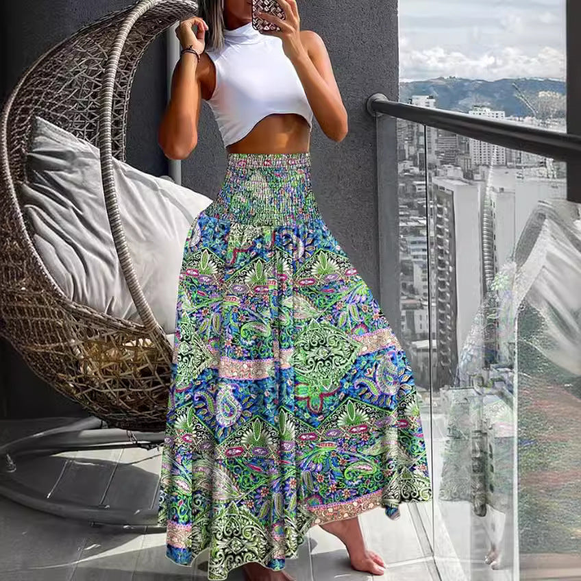 Damen Maxirock mit elastischem Bund und buntem Musterdruck Stalluxe