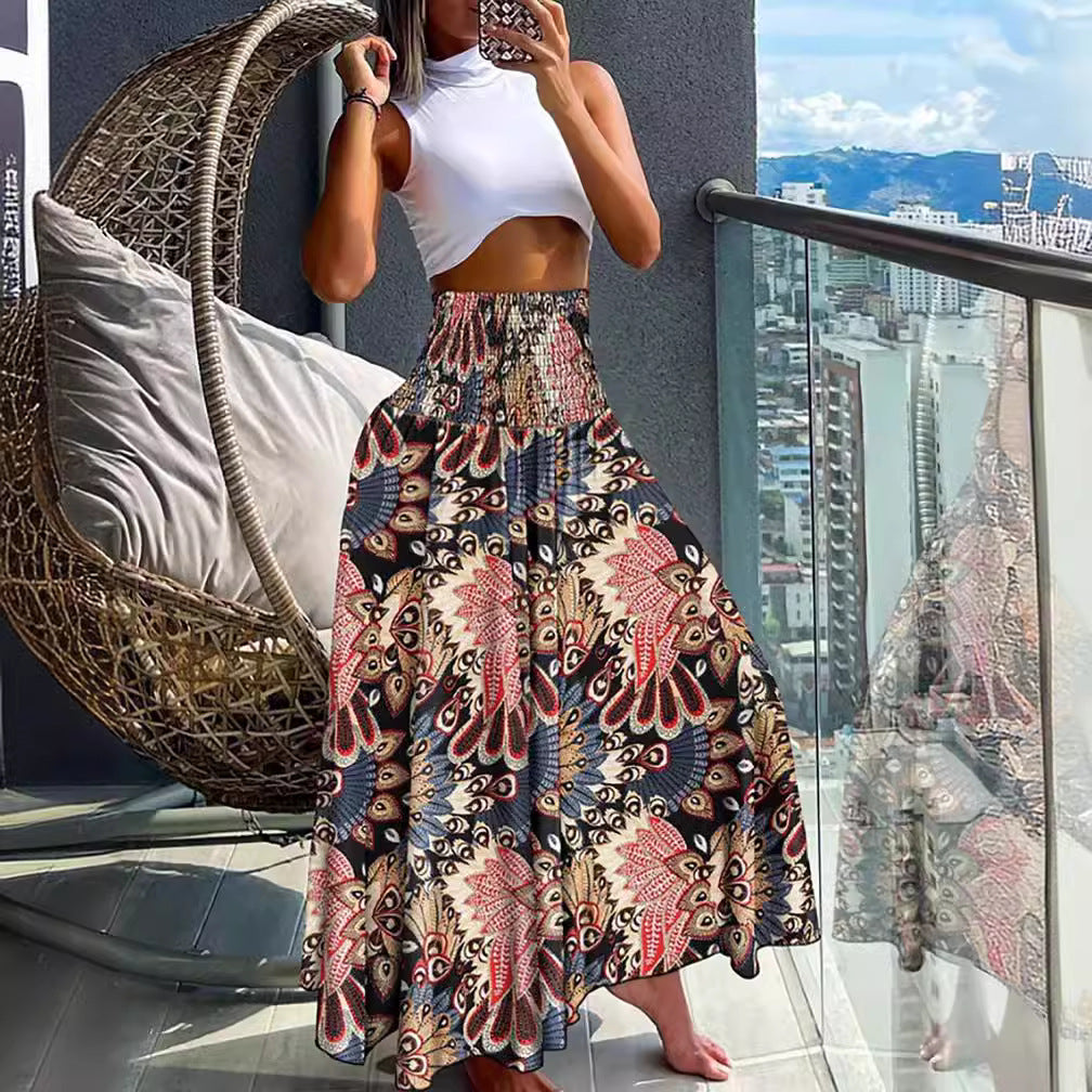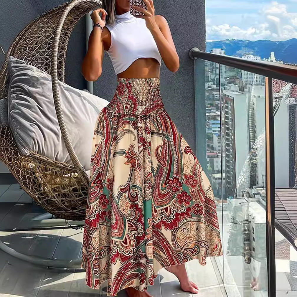 Entdecken Sie unseren stilvollen Damen Maxirock mit elastischem Taillenbund, der nicht nur bequem sitzt, sondern auch mit einem einzigartigen floralen Muster begeistert. Dieser Rock ist vielseitig kombinierbar und ideal für verschiedene Anlässe, vom lässigen Stadtbummel bis hin zum eleganten Abendessen.