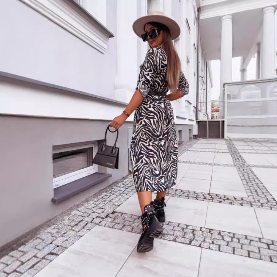 Damen Midi-Kleid mit Tiermuster und Gürtel Stalluxe