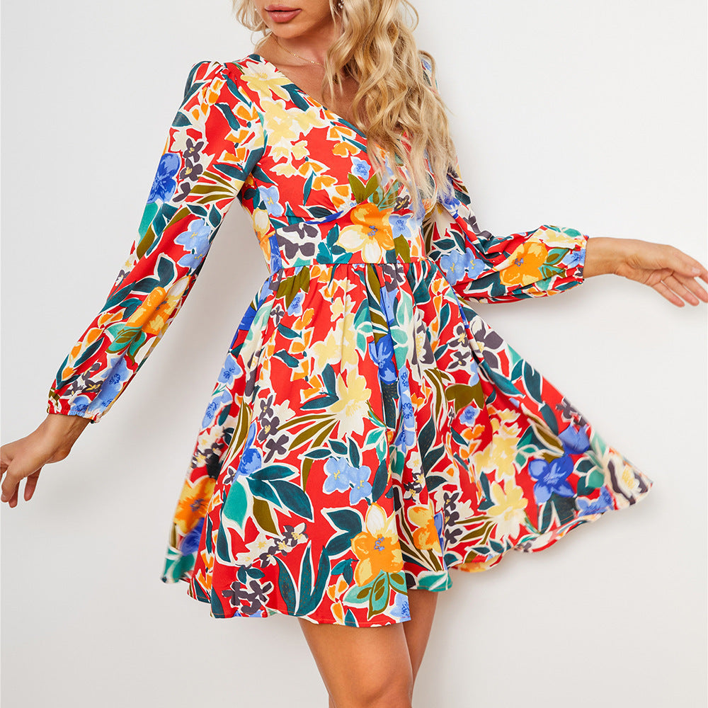 Entdecken Sie unser exquisite Damen Minikleid, das mit einer luxuriösen floralem Muster und elegantem Design begeistert. Es verfügt über einen schmalen V-Ausschnitt und lange Puffärmel, die einen romantischen und gleichzeitig modischen Look schaffen. Perfekt geeignet für besondere Anlässe oder den Alltag, bietet dieses Kleid unübertroffenen Komfort und Stil.