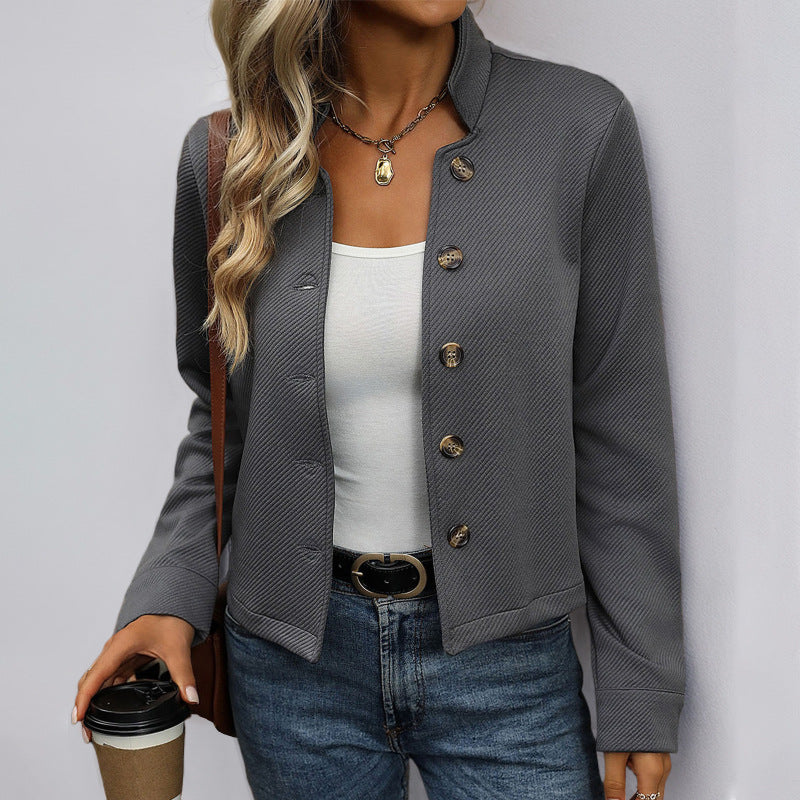 • Design: Die Jacke hat einen eleganten Kragen und ist mit stilvollen Knöpfen versehen, die einen klassischen Look garantieren.