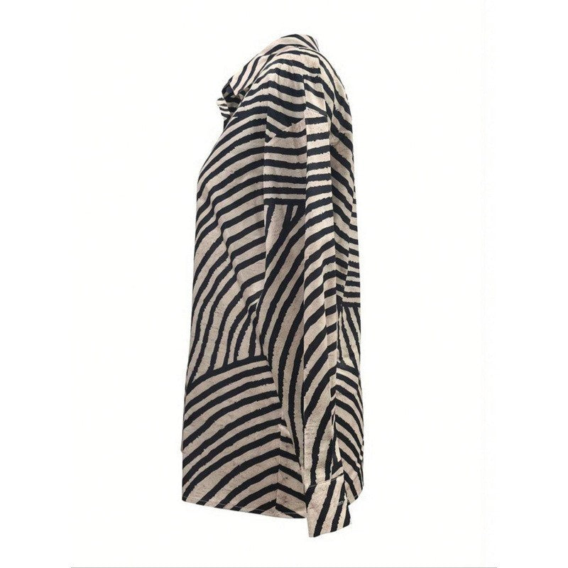 Entdecken Sie die perfekte Kombination aus Stil und Komfort mit unserem modernen Hemdblusenshirt für Damen. Dieses exquisite Shirt besticht durch sein einzigartiges grafisches Muster und verleiht jedem Outfit einen Hauch von Eleganz.