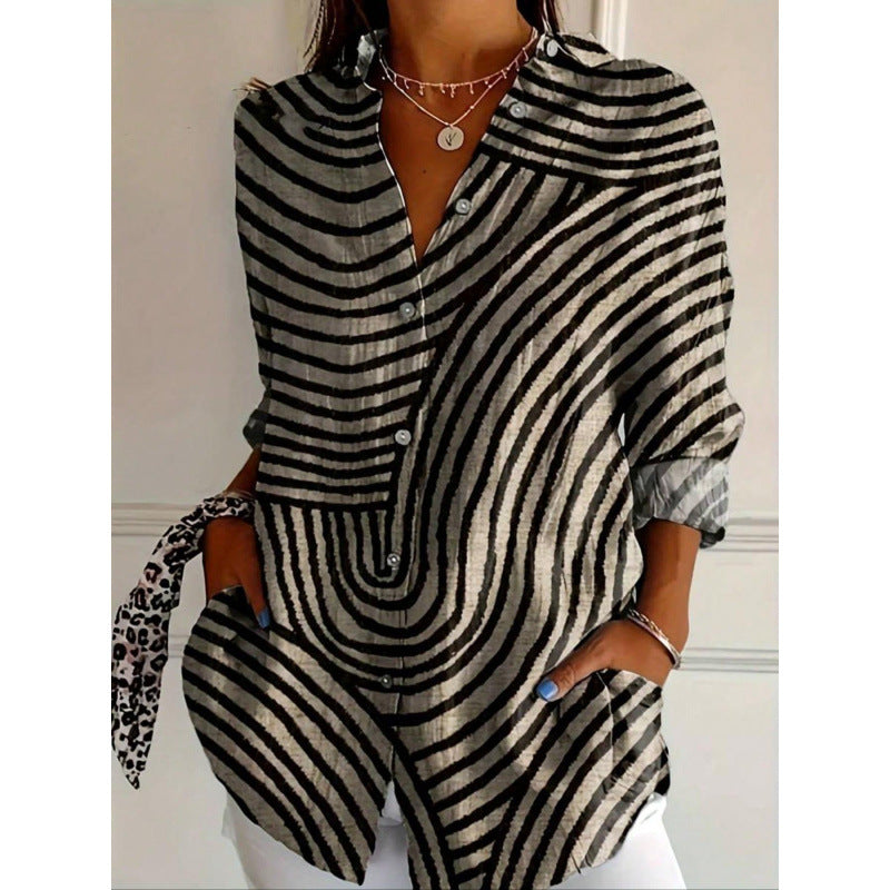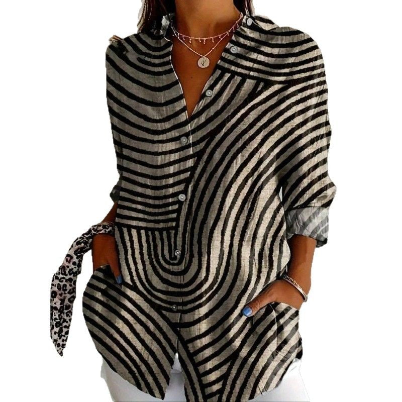 Damen modernes Hemdblusenshirt mit grafischem Muster Stalluxe