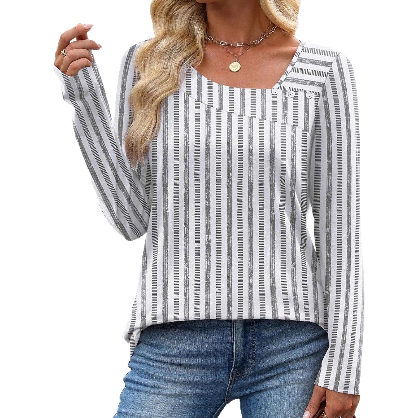 Damen modische Langarmbluse mit Streifenmuster und dekorativen Knöpfen Stalluxe