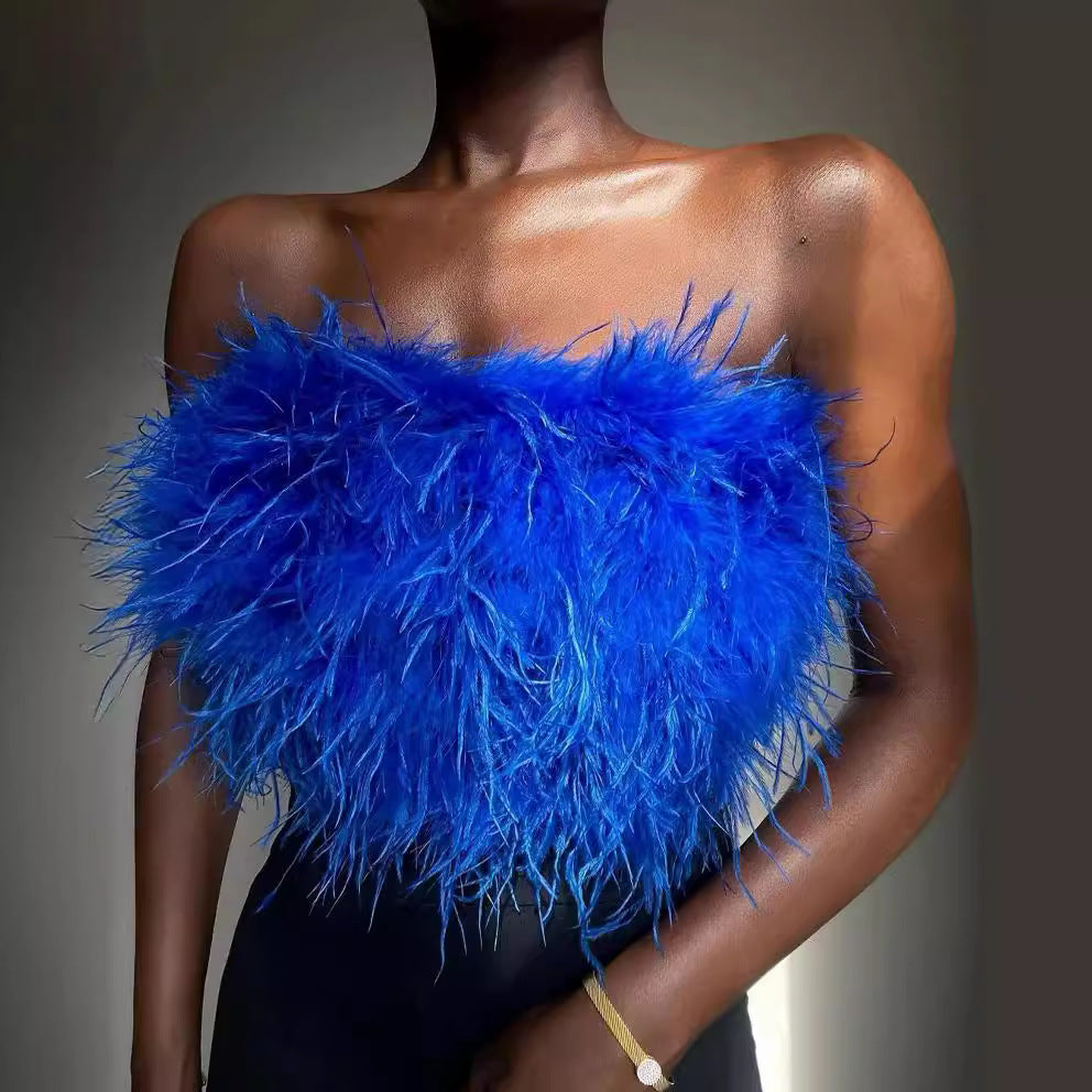 Damen Modische Top mit aufregendem Federn und schulterfreiem Design Stalluxe