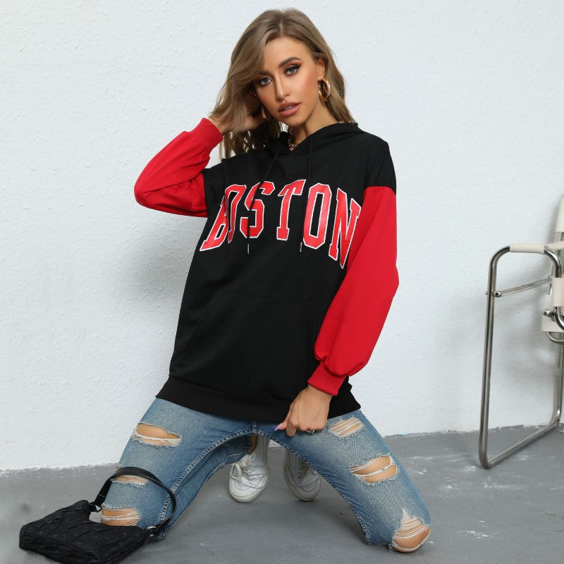 • Ärmelgestaltung: Kontrastierende Ärmel in lebhaftem Rot, die dem Hoodie eine besondere Note verleihen.