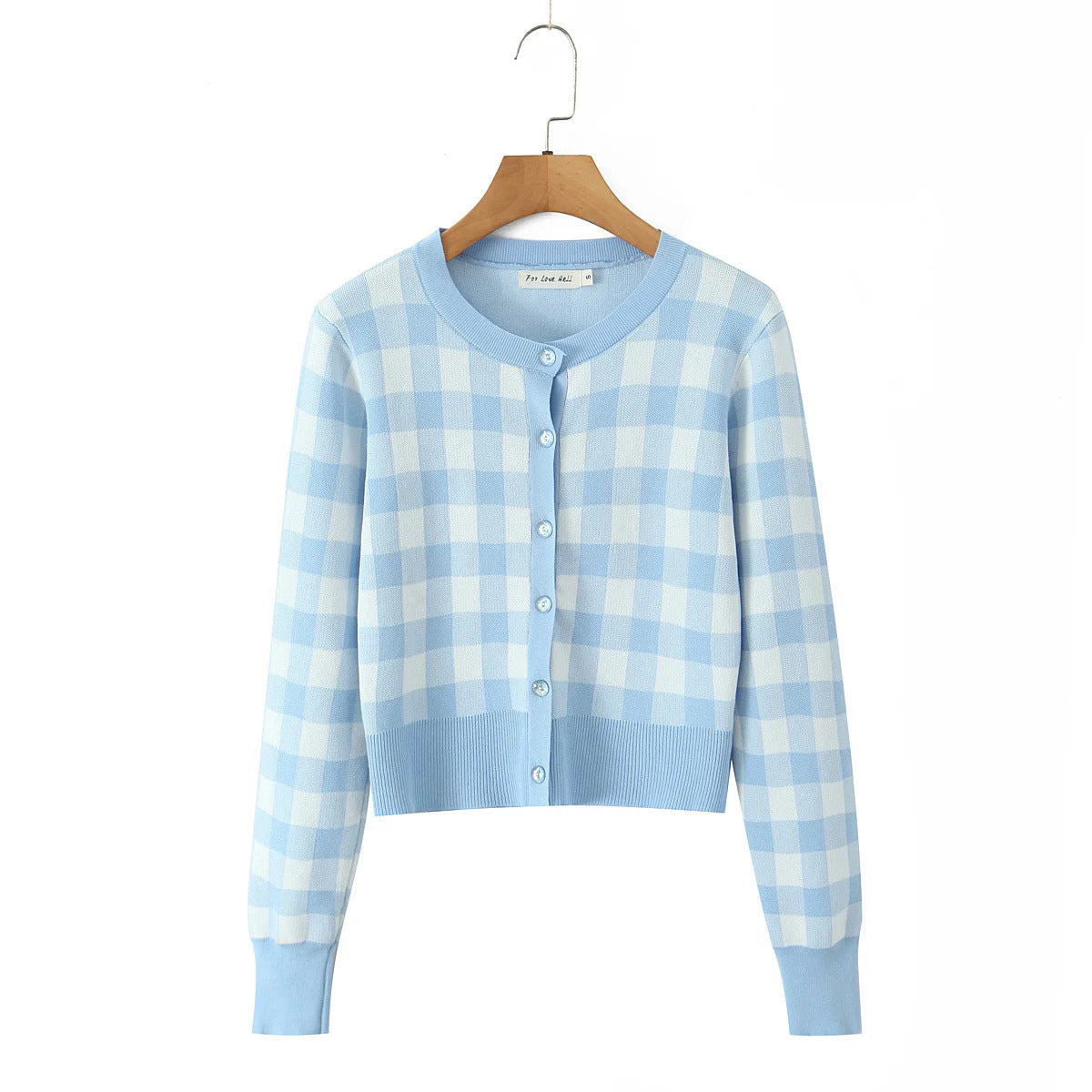 Entdecken Sie die elegante Damen modische karierte Strickjacke, die Stil und Komfort vereint. Diese vielseitige jacke ist ideal für jede Gelegenheit, sei es im Büro oder in der Freizeit.