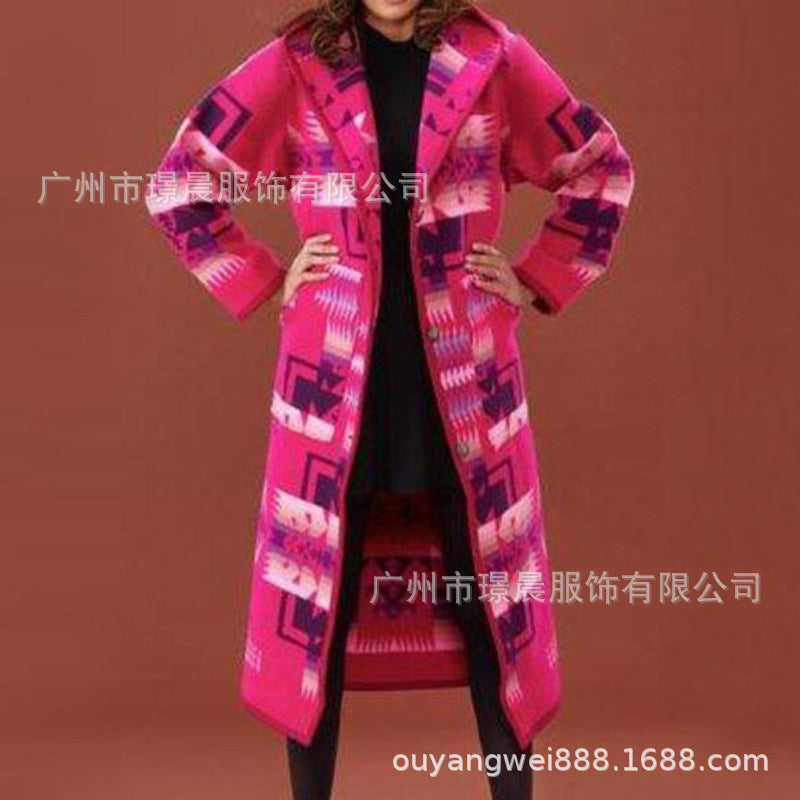 Damen modischer Langmantel mit geometrischem Muster und großem Kragen Stalluxe
