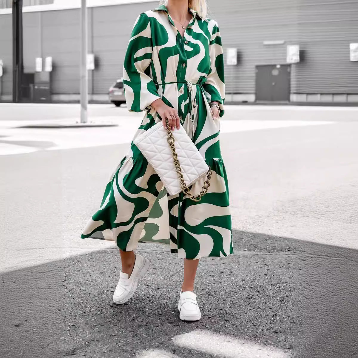 • Ein modernes Muster, das dem Kleid einen einzigartigen Charakter verleiht.