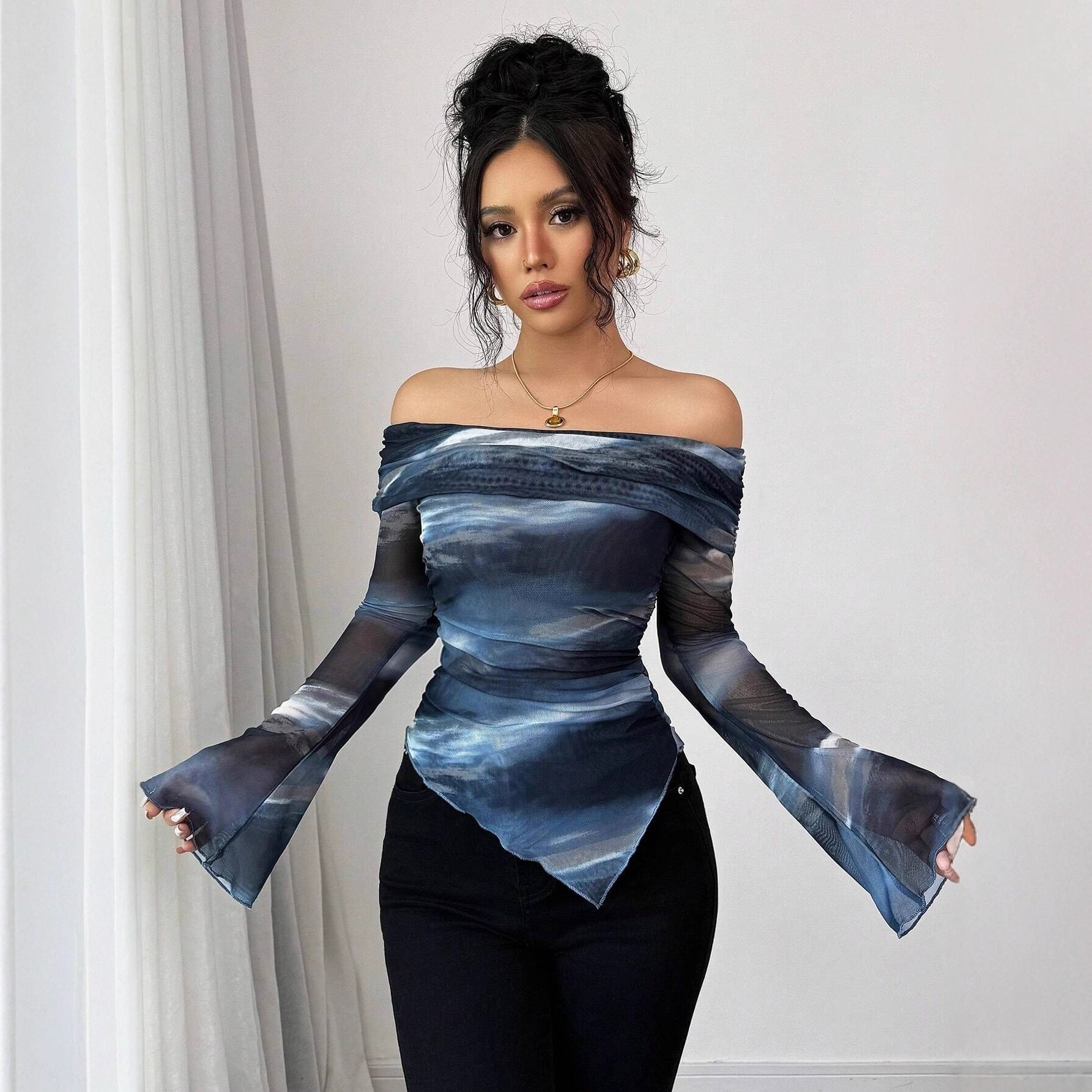 Damen Off-Shoulder Bluse mit floralen Transparenzelementen und asymmetrischem Schnitt Stalluxe