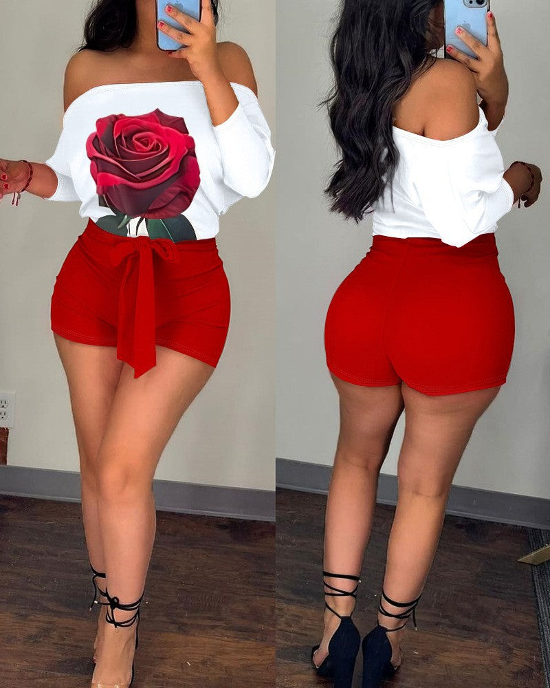 Damen Off-Shoulder Oberteil mit floralem Druck und hochgeschnittenem Rock Stalluxe